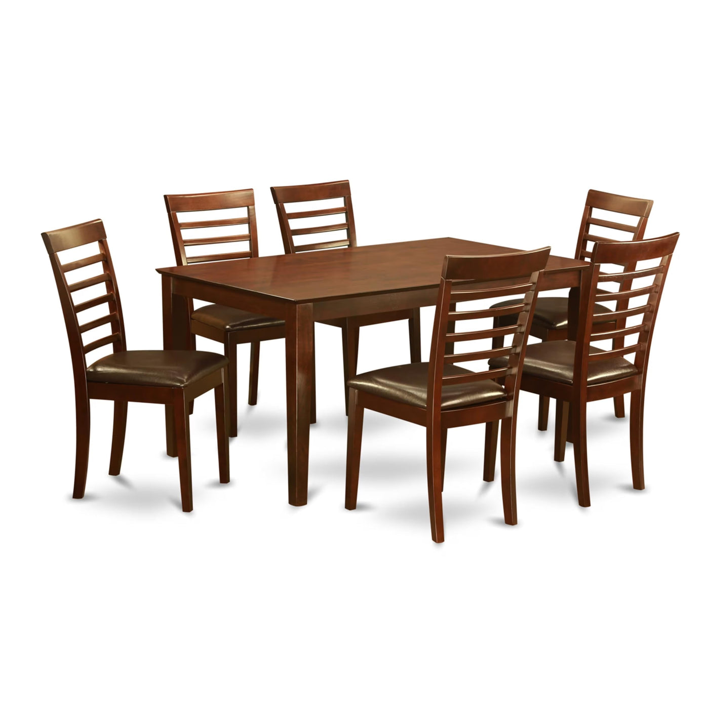 East West Furniture CAML7-MAH-LC 7 Piece Dining Room Table Set Consist of a Rectangle Wooden Table and 6 Faux Leather Kitchen Dining Chairs, 36x60 Inch, Mahogany