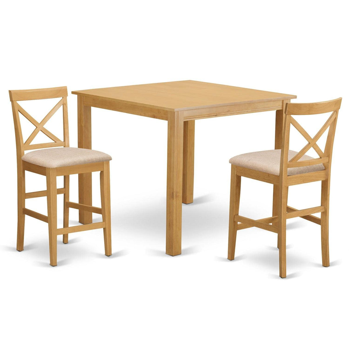East West Furniture CFPB3-OAK-C 3 Piece Counter Height Pub Set for Small Spaces Contains a Square Dining Room Table and 2 Linen Fabric Upholstered Chairs, 42x42 Inch, Oak