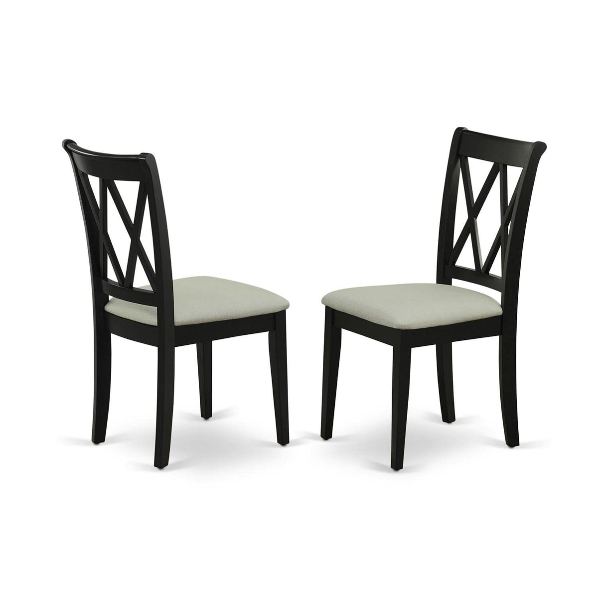 East West Furniture - Clc-Blk-C - Dining Chairs Set Of 2Transform Your Living Area Into An Oasis Of Elegance With Our Exquisite Clarksville Double X-Back Dining Chairs. These Chairs Boast A Modern Double X-Back Design That Is Guaranteed To Elevate The Appeal Of Any Dining Table. The Solid Wood Double X-Back Provides Superior Back Support, While The High-Quality Asian Hardwood (Rubber Wood) Frame Ensures Stability And Durability. The Seats Are Softly Padded With Comfortable Foam And Wrapped In Fine Quality Linen Fabric For A Luxurious Look And Comfortable Seating Experience. The Cutting-Edge, Sturdy Solid Wood Structure, Cozy Linen Fabricupholstery Seat, Double X-Back, And Robust Legs Create A Chic Ambiance In Your Dining Room, Providing Exceptional Stability To These Amazing Linen Fabric Dining Chairs, And Comfortable Back Support. The Chairs' Perfectly Proportioned Dimensions Make Them Easy To Carry, Clean, Assemble, And Rearrange As Needed. Their Timeless Design Complements Any Decor, While The Plush Cushion Upholstered In Sleek Linen Fabric Ensures That Users Remain Comfortable During Extended Seating Periods. Trust Our Clarksville Double X-Back Dining Chairs To Bring Unparalleled Sophistication And Comfort To Your Dining Space.Product Features: Fabric: Linen Fabric Cushion Material: Foam Leg And Double X-Back Color: Black Dimensions: Length: 22; Width: 18; Height: 37.Includes: Set Of 2 Modern Dining Room Chairs