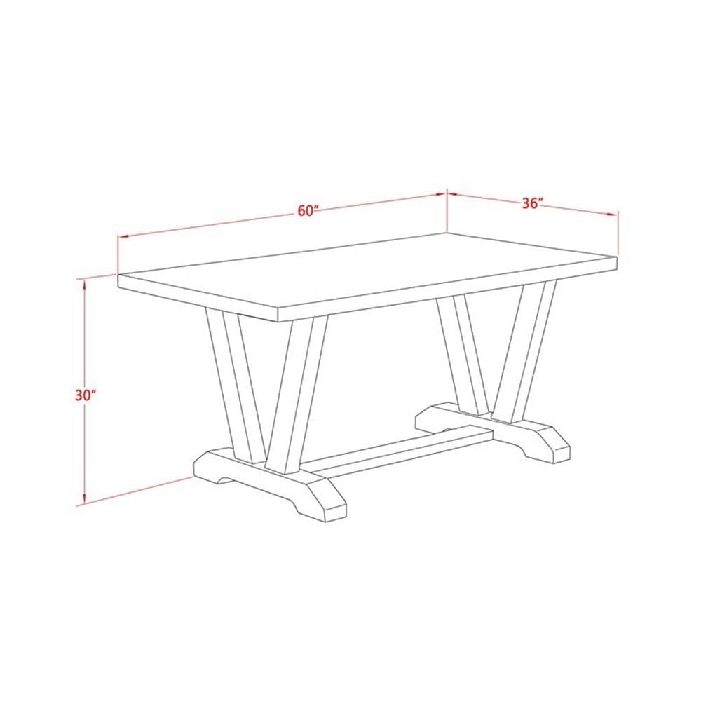 EAST WEST FURNITURE - V696VE650-7 - 7 PC MODERN DINING SETOur table set adds a touch of elegance to any dining room that you and your family will absolutely enjoy. The elegant 7 Piece kitchen dining table set consists of a dinner table and 6 dining room chairs. This rectangular dining table top is offered in a Cement finish. In addition, the upholstered dining chairs in a Dark Gotham Grey Linen Fabric enhance the elegance of any home. Ideal for dinette, kitchen and dining areas, this multi-functional dining room table set seats up to 6 people, perfect for families to enjoy mealtimes together. A great addition to your dining area and a perfect ensemble that will strike your guests with its best impression. We have created these Dark Gotham Grey finish dining room chairs and dining table with the help of highly experienced carpenters, who generate a smooth and high-end finish to this dinner table set. Modern dining chairs of the mid century modern dining set can be moved under the modern dining table when you finish your meal, which our dining room set largely helps you save room space. Designed with easy and fast assembly in mind, each set comes conveniently flat packed with easy-to-follow instructions and all necessary tools included. Our premium quality modern dining table set is perfect for you and your dining area as well as the kitchen area. Our modern dining set is quite easy to clean and always offers a good appeal. The kitchen table set adds a refined touch to even your most casual family dinners. Keep Enjoy With East West Furniture!TABLE SET FEATURES:? Wood Material: Rubberwood? Fabric Material: Linen Fabric? Mid Century Dining Table Top Color: Cement? Dining Table Legs Color: Wire Brushed Black? Modern Chair Fabric Color: Dark Gotham Grey? Upholstered Dining Chairs Legs Color: Black? Parson Chairs Back Style: High Back? Table Dimensions: Length: 60; Width: 36; Height: 30.? Chair Dimensions: Length
