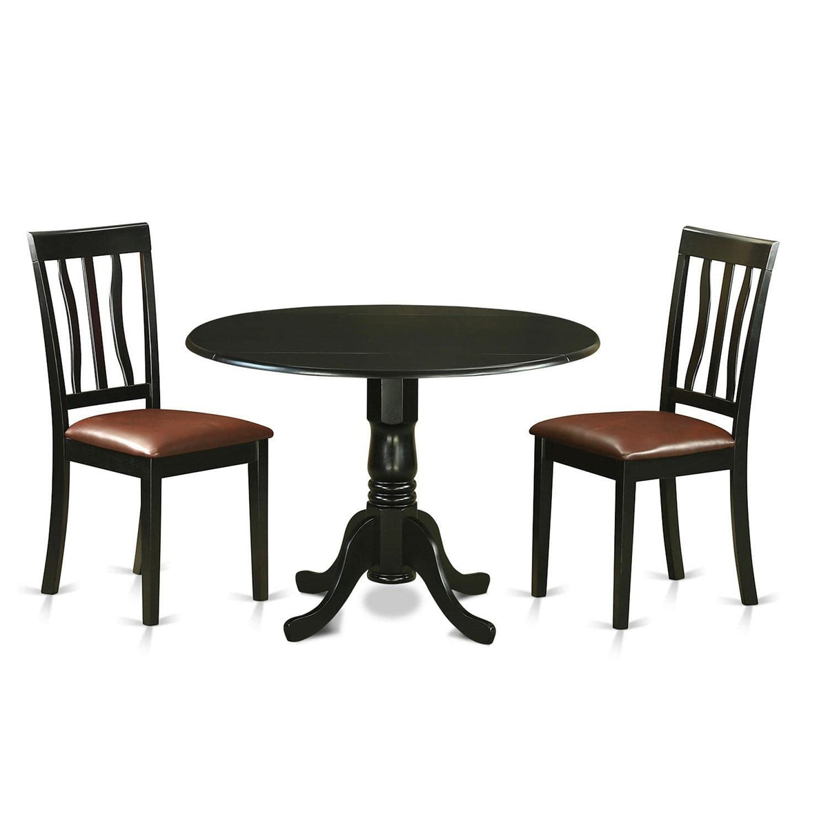 East West Furniture DLAN3-BLK-LC 3 Piece Dinette Set for Small Spaces Contains a Round Dining Table with Dropleaf and 2 Faux Leather Upholstered Dining Chairs, 42x42 Inch, Black