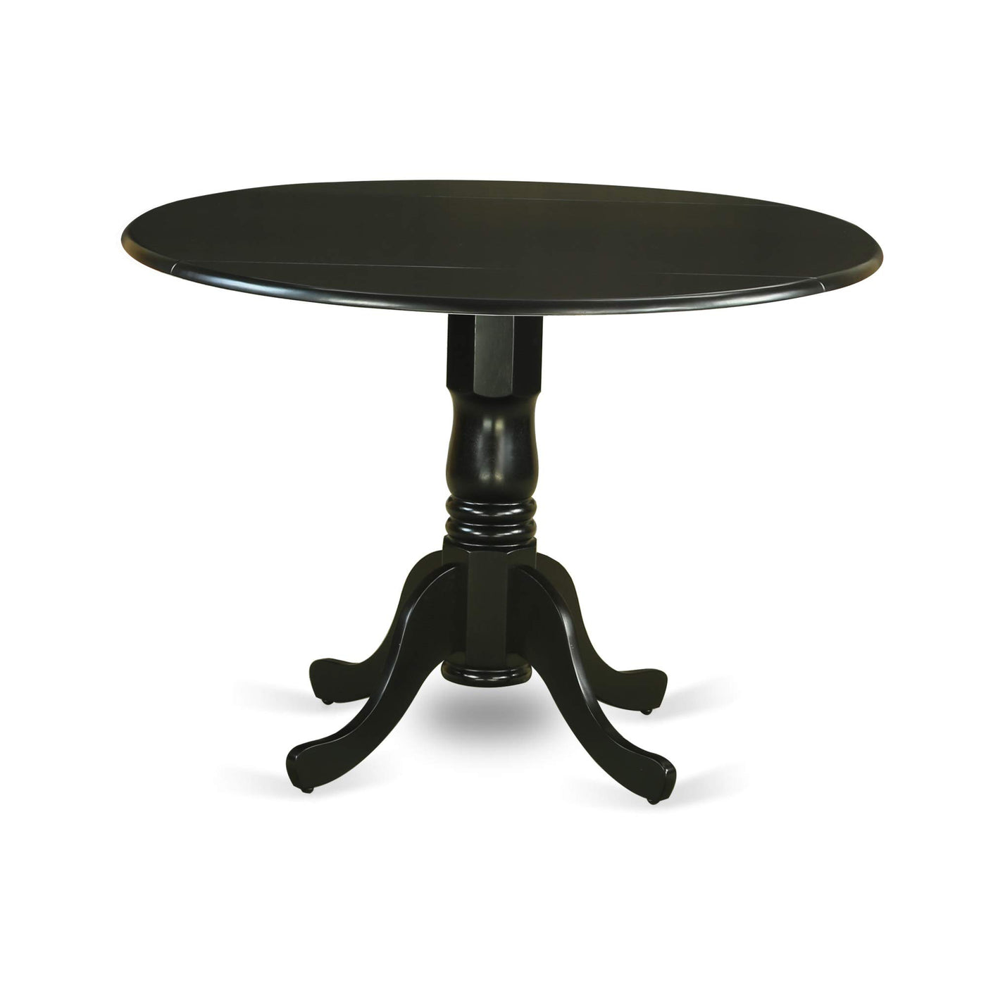 East West Furniture Dlcl5-Blk-C 5 Piece Dining Room Table Set Includes A Round Dining Table With Dropleaf And 4 Linen Fabric Upholstered Chairs, 42X42 Inch, Black