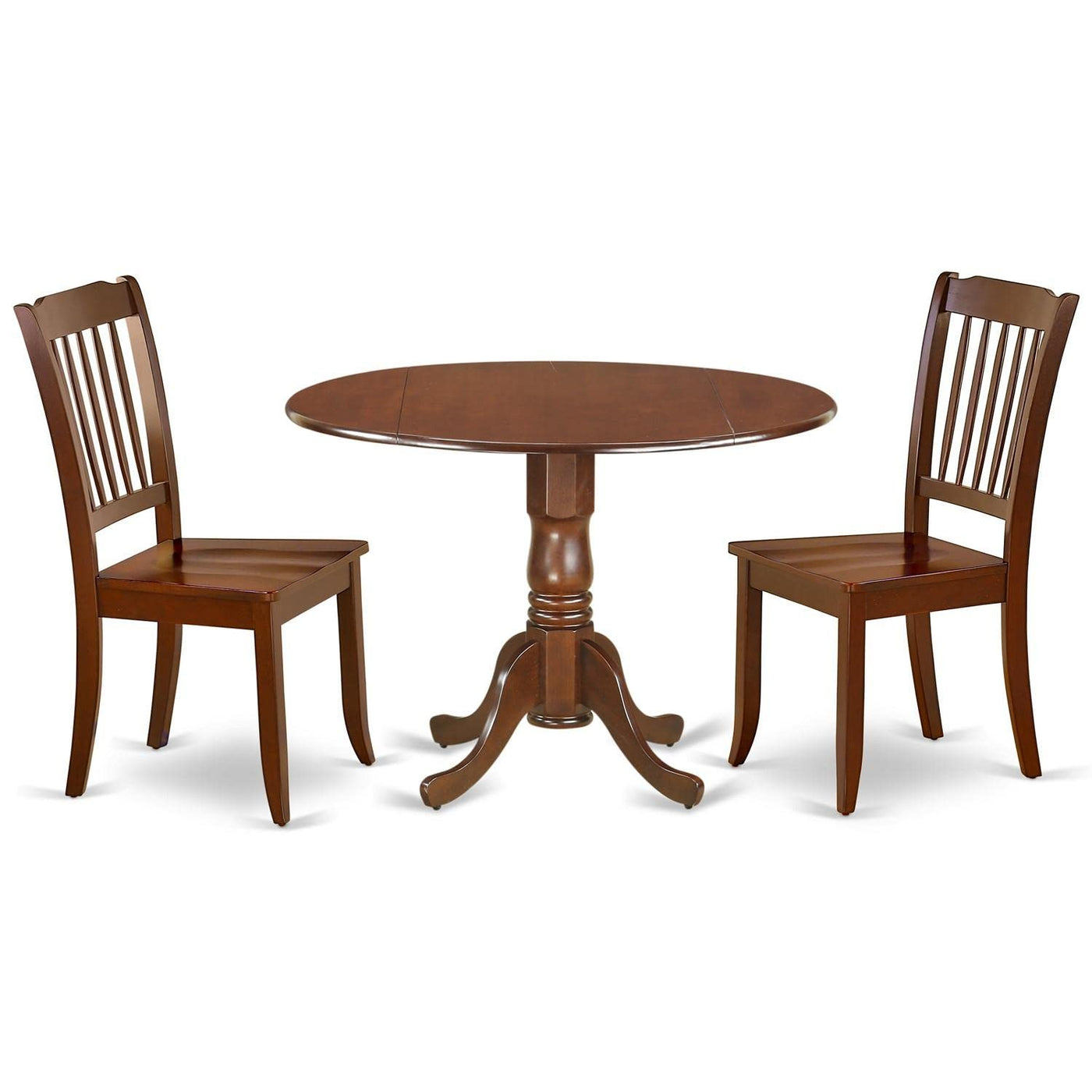East West Furniture Dlda3-Mah-W 3 Piece Kitchen Table Set For Small Spaces Contains A Round Dining Table With Dropleaf And 2 Dining Room Chairs, 42X42 Inch, Mahogany