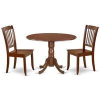 East West Furniture - Dlda3-Mah-W - 3-Piece Kitchen Table Setthis Elegant Dining Set Boasts A Modern Design That Exudes Sophistication And Is Perfect For Specialized Dining Occasions. The Round Dining Table, With Its Beautiful Mahogany Color, Complements A Variety Of Attractive Themes And Subtly Reflects Light, Enhancing The Living Area And Showcasing The Kitchen Dining Chairs. The Danbury Dining Room Chair, Finished In Mahogany, Offers A Stylish And Modern Look To Your Kitchen Space. The Chairs Have A Solid Wood Seat To Suit Personal Preferences And Are Designed To Be Both Stylish And Comfortable. The Curved Front Legs And 7 Vertical Slats Give Any Dining Area A Touch Of Class And Sophistication. The Chairs Are Made Of Hardwood, Providing Stability And A Sturdy Finish, And Are Engineered To Offer Great Comfort To Your Spine, Reducing The Chances Of Back Pain. The Matching Color Of The Chairs With The Table Creates A Good Contrast In The Kitchen Area, Making The Dining Area Significantly Attractive. Overall, This Contemporary Dining Set Is Budget-Friendly, Durable, And Comfortable, Making It An Excellent Choice For A Great Dining Experience With Family Or Friends. Its Standard Shape, Size, And Design Add Elegance And Class To Any Place It Is Placed.Product Features Material: Asian Hardwood Color: Mahogany Table Dimensions: Length: 42; Width: 42; Height: 29.5.5 Chair Dimensions: Length: 22; Width: 18; Height: 38. Weight Capacity: 300 Lbs.Includes: 1 Round Table And 2 Wooden Chairs.