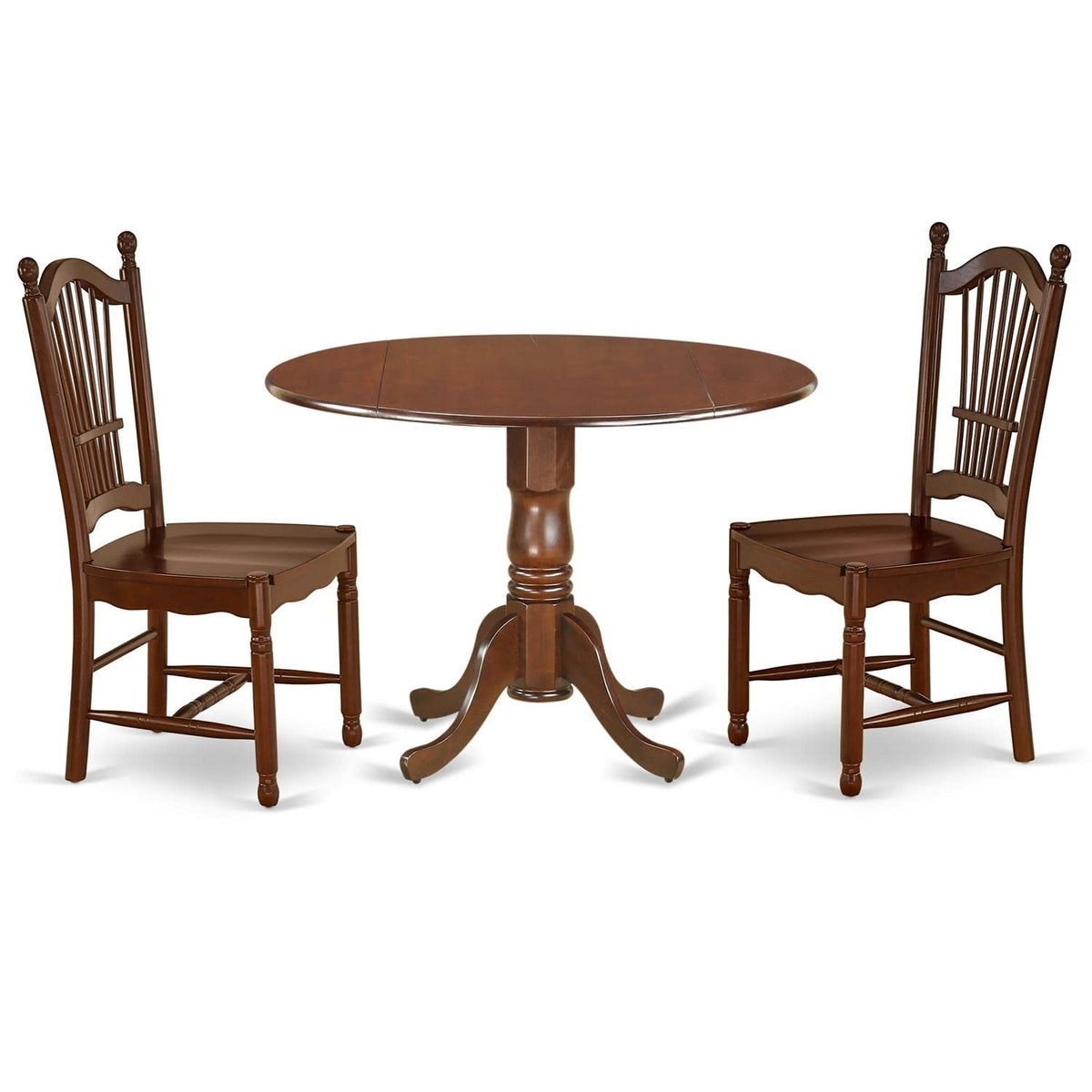 East West Furniture - Dldo3-Mah-W - 3-Pieces Kitchen Table Setthis Elegant Modern Kitchen Table Set For The Kitchen Is Made Of Asian Hardwood And Features A Stunning Mahogany Color That Complements A Variety Of Attractive Themes. The Fantastic Round Table Has A Drop-Down Leaf That Can Be Easily Expanded To Create More Space For Special Occasions Or Parties. Our Dining Room Chair Is Also Finished In Mahogany Color And Offers A Modern And Exquisite Look With Its Solid Wood Top. The Seat Of The Kitchen Chair Is Made Of Solid Wood And Can Be Adjusted To Your Personal Preference And Design. The Frame Of The Dining Chairs Is Engineered To Provide Great Comfort To Your Spine And Reduce The Risk Of Back Pain. The Chair'S Color Matches The Table, Providing A Good Contrast In The Kitchen Area. The Standard Shape, Size, And Design Of The Dining Set Make The Dining Area Significantly More Attractive. This Contemporary, Budget-Friendly, Durable, And Comfortable Dining Set Can Be An Excellent Choice For A Great Dining Experience With Your Family And Friends.Product Features: Material: Asian Hardwood Color: Mahogany Table Dimensions: Length: 42; Width: 42; Height: 29.5. 5 Chair Dimensions: Length: 21; Width: 18; Height: 39. Weight Capacity: 300 Lbs.Includes: 1 Round Table And 2 Wooden Chairs.