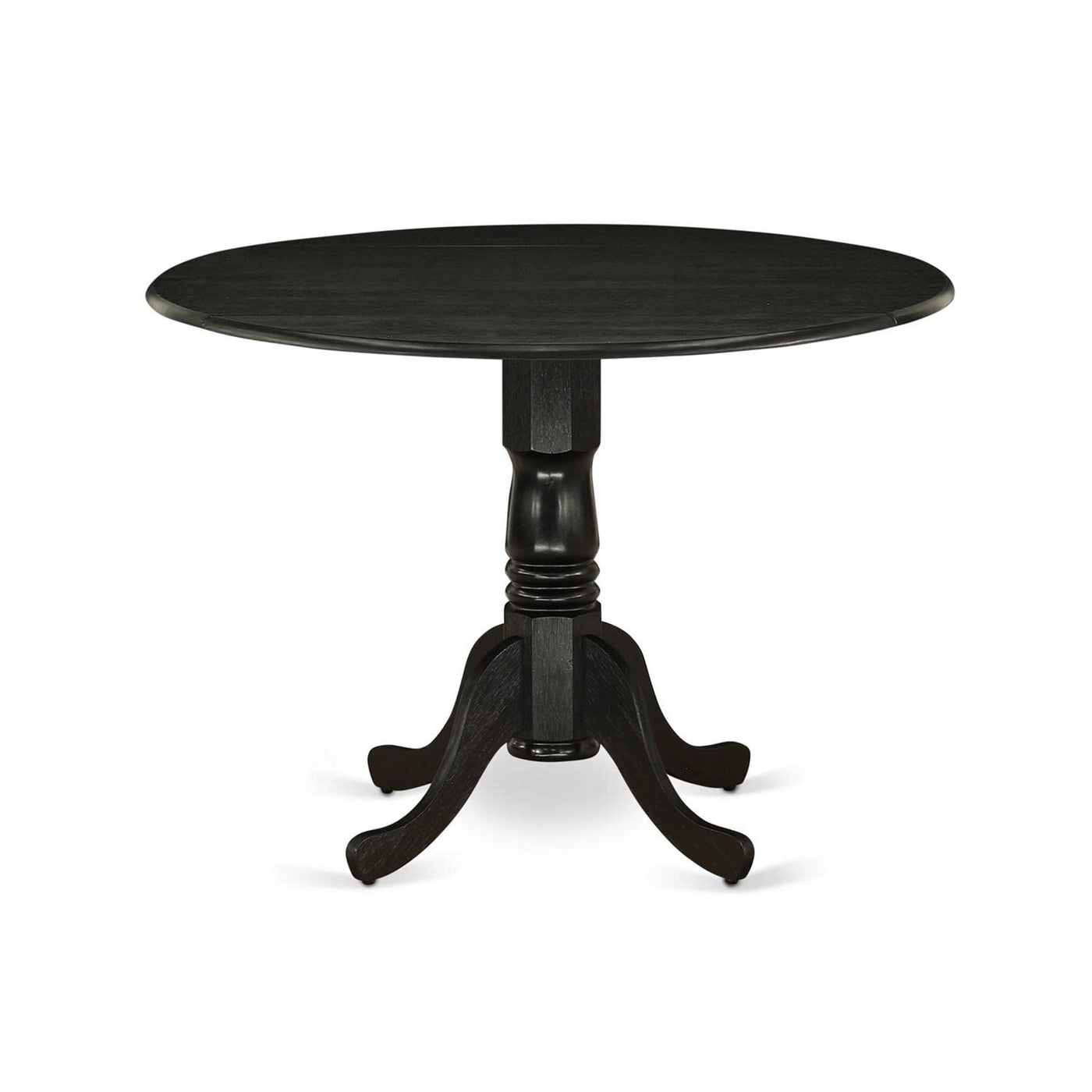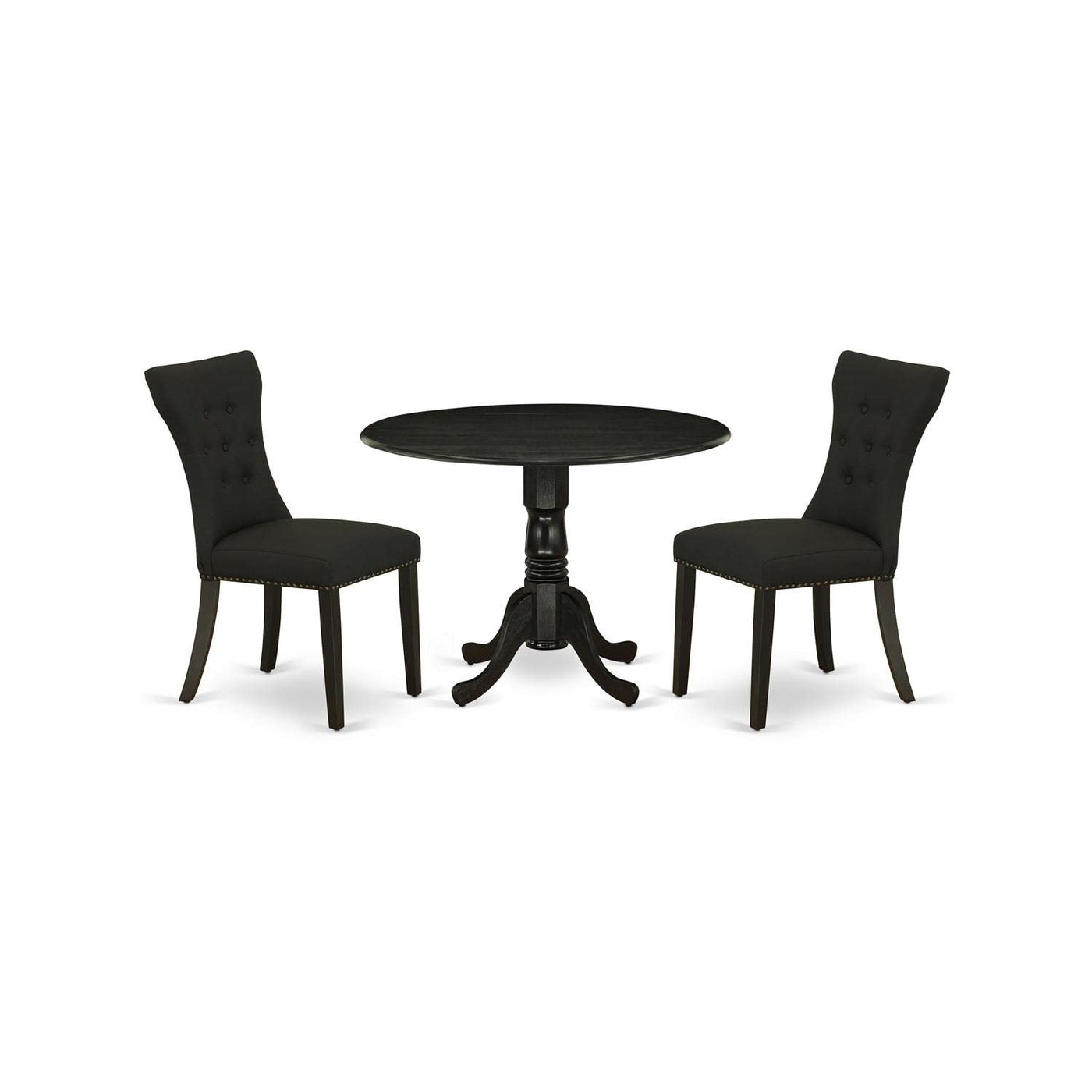 East West Furniture Dlga3-Abk-24 3 Piece Dinette Set For Small Spaces Contains A Round Dining Table With Dropleaf And 2 Black Linen Fabric Upholstered Chairs, 42X42 Inch, Wirebrushed Black
