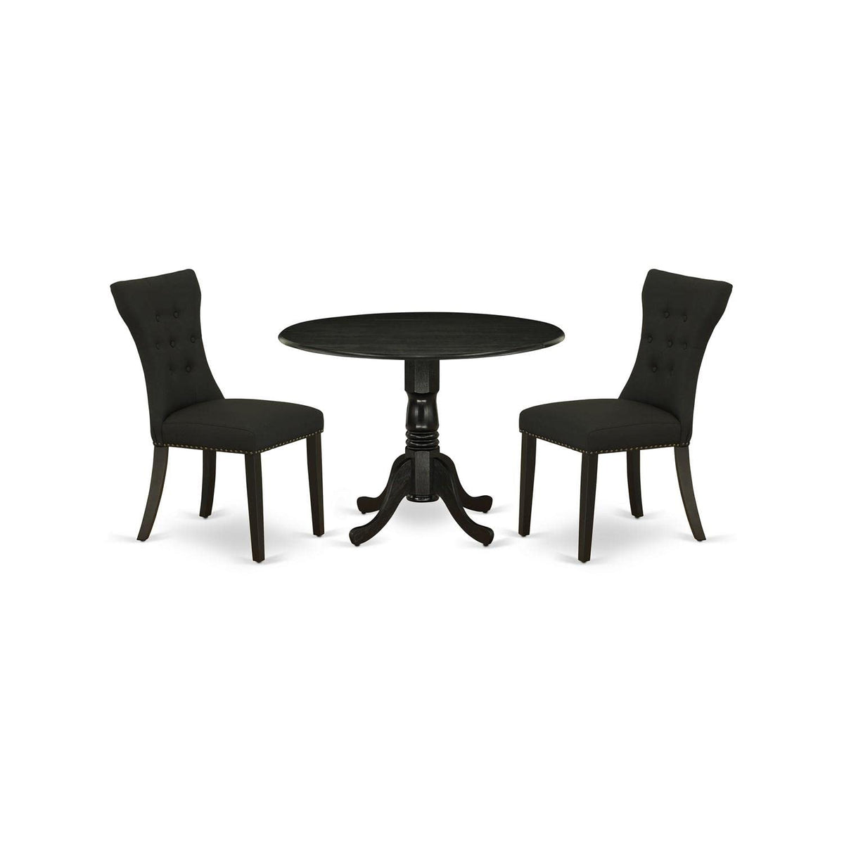 East West Furniture Dlga3-Blk-24 3 Piece Kitchen Table & Chairs Set Contains A Round Dining Room Table With Dropleaf And 2 Black Linen Fabric Parsons Dining Chairs, 42X42 Inch, Black