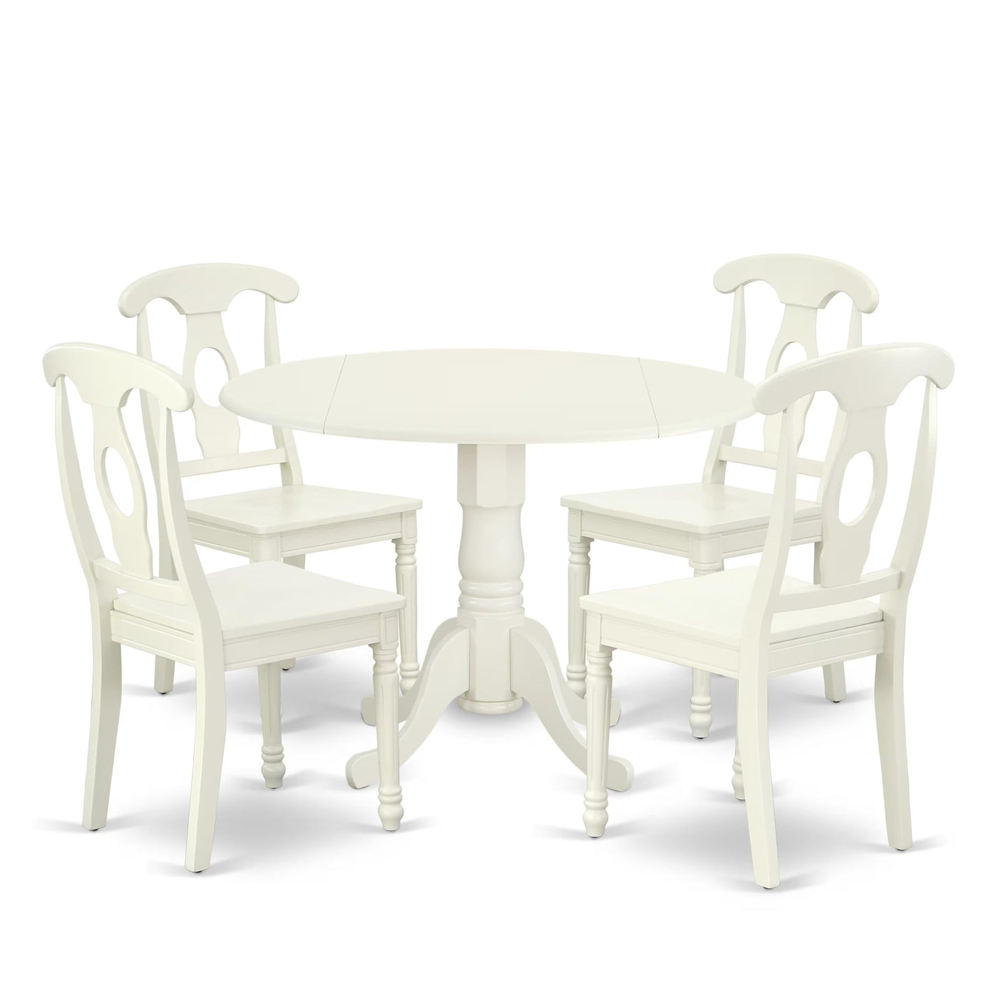 East West Furniture Dlke5-Lwh-W 5 Piece Dining Room Furniture Set Includes A Round Kitchen Table With Dropleaf And 4 Dining Chairs, 42X42 Inch, Linen White