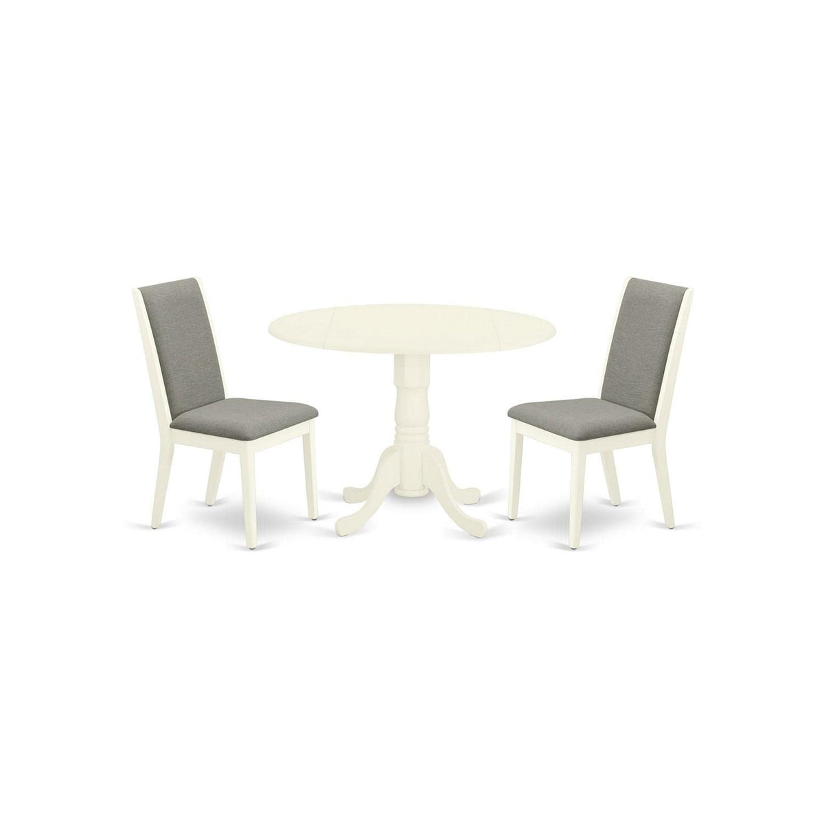 East West Furniture - Dlla3-Whi-06 - Dining Room Settransform Your Dining Area Or Kitchen With The East West Furniture 3-Piece Dining Set, Which Includes A Round Dining Table And 2 Upholstered Dining Chairs. Crafted From Durable Rubber Wood, This Dining Set Is Built To Last And Features An Ergonomic Design For Ultimate Comfort. The Linen White Finish And Round Design Make It A Stylish Addition To Any Space. The Compact Size Of The Dining Table Is Perfect For Smaller Areas. The Parson Chairs Are Upholstered In Soft Linen Fabric With Solid Rubber Wood Legs And A Stylish Backrest Design. This Kitchen Table And Chair Set Will Add Modern Elegance To Your Home And Provide Ample Space For Your Family Or Friends To Gather. The Simple Yet Stunning Design Is Accentuated By The Glossy Linen White Finish. Assembly Is A Breeze With The Included Tools And Hardware, And Cleaning Is Effortless With Just A Damp Cloth. Buy With Confidence From East West Furniture, Where Customer Satisfaction Is Our Top Priority. Don'T Hesitate To Contact Us For Any Assistance.Product Features: Kitchen Parson Chairs Seat Color: Shitake Parson Dining Chairs Legs Color: Linen White Round Dining Table Color: Linen White Dining Room Table Sizes: Length: 42; Width: 42; Height: 29.5. Upholstered Dining Chairs Sizes:Length: 22; Width: 20; Height: 39.Included: A Beautiful Round Kitchen Table And 2 Brilliant Kitchen Chairs.