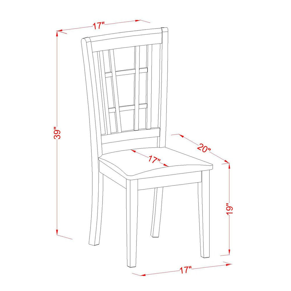EAST WEST FURNITURE - DLNI5-BLK-C - DINING ROOM SETThe stylish design and decor of our kitchen set will enhance the appearance of any dining area. Comprising a breakfast table and 4 matching chairs, this 5-piece set adds simple and contemporary beauty to your home, and is perfect for kitchens, kitchens, and dining areas. The table seats up to four people, making it great for family-style dinners and meals with friends. In our kitchen, we have a breakfast table that features a smooth black tabletop and coordinating pedestal legs. It is accompanied by black chairs with four legs, which come with comfortable seats made of linen fabric. The innovative design of the kitchen chairs seamlessly complements any decor, adding a sense of elegance to your room. The slatted back of the wood dining chair blends beautifully with the linen fabric seat, creating a sophisticated look. Crafted from high-quality Asian wood material, also known as Rubber wood, this kitchen table set is durable and stable. We have employed highly experienced carpenters to create a smooth and high-quality finish for this dining room set, which is sure to increase the elegance of any dining room.PRODUCT FEATURES: Frame Material: Rubber Wood Table Color: Black Chair Color: Black Seat Material: Linen Fabric Back Style: Slatted Kitchen Chairs Sizes: Length: 20; Width: 17; Height: 39. Dining Table Sizes: Length: 42; Width: 42; Height: 29.5.Included: A Modern Dining Table and 4 Wooden Chairs.