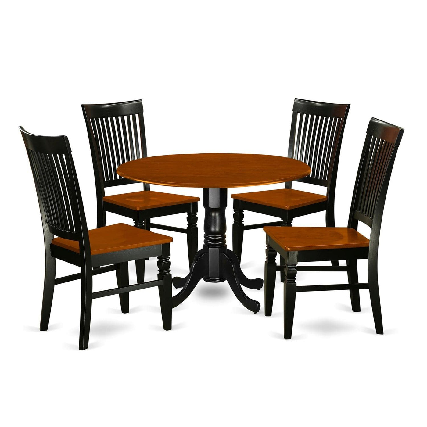 East West Furniture DLWE5-BCH-W 5 Piece Kitchen Table & Chairs Set Includes a Round Dining Room Table with Dropleaf and 4 Solid Wood Seat Chairs, 42x42 Inch, Black & Cherry