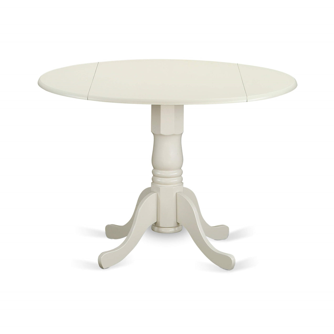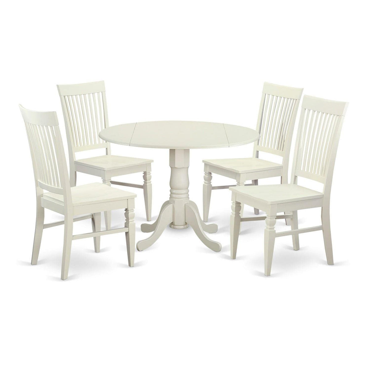 East West Furniture DLWE5-WHI-W 5 Piece Dining Table Set for 4 Includes a Round Kitchen Table with Dropleaf and 4 Dining Room Chairs, 42x42 Inch, Linen White