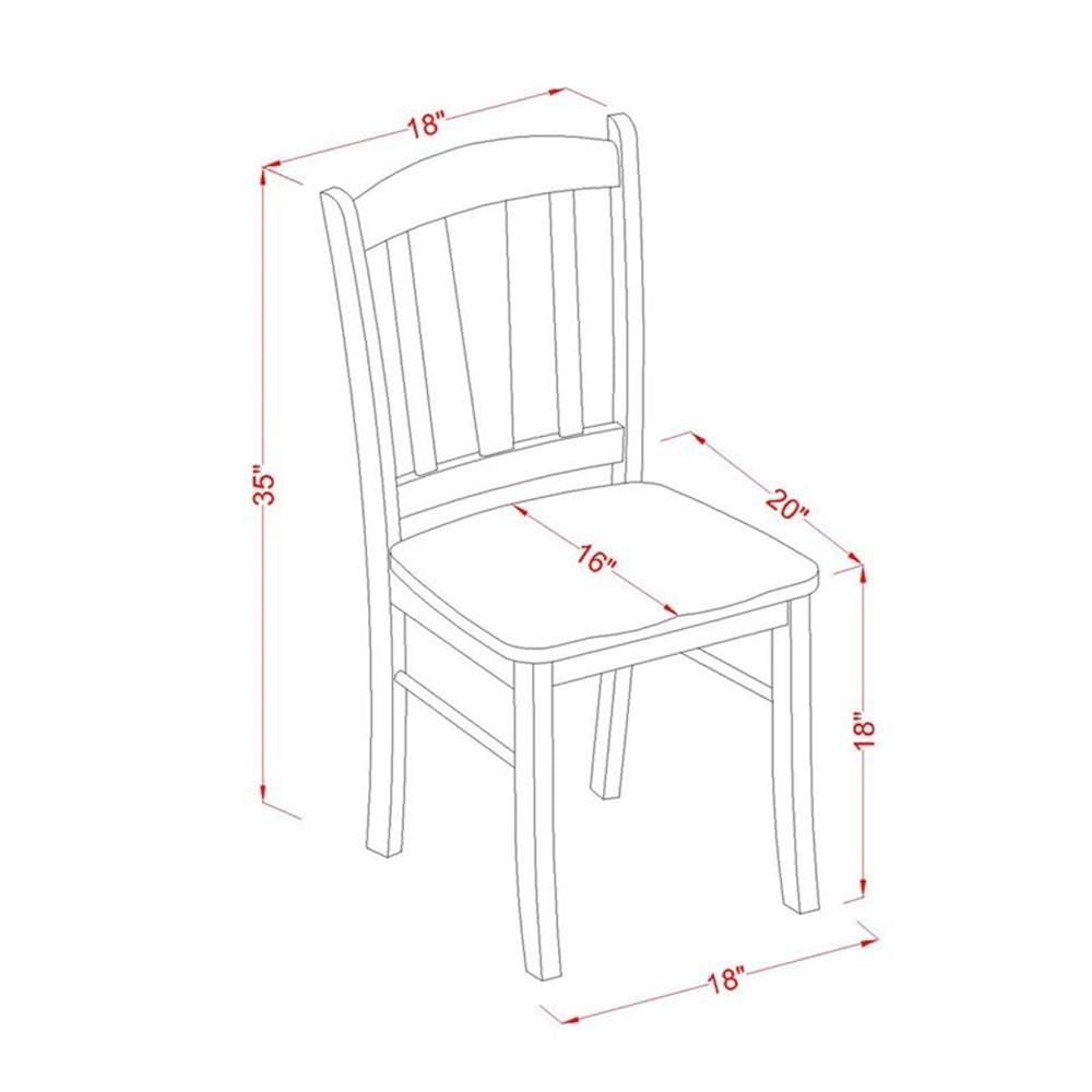 EAST WEST FURNITURE - DMDL3-Oak-W - 3-Pc KITCHEN DINING ROOM SETThis 3-Pc dinette room set includes 2 modern dining chairs and 1 Dropleafs wood dining table. These wood chairs have a wooden seat, Slatted Chair Back and the wood dining table consists of a round table top and pedestal Legs. We have created these mid century dining chairs and dining table with the help of highly experienced carpenters, who generate a smooth and high-end finish to this dinette room set. We try to offer innovation as well as ease to build. Our superior quality dining room table set is ideal for you and any dining room. This kitchen table set can be used for casual home parties or intimate gatherings.FEATURES:Frame Material: Asian Solid WoodMid Century Dining Chairs Seating Material: WoodKitchen Chairs Legs Color: OakDining Table Base Color: OakModern Kitchen Table top Color: Oakdining room chairs Dimensions: Length 18; Width 20; Height 35.Modern dining room table Dimensions: Length 42; Width 42; Height 29.5.Include in the Package: 3-Pc Dinette Room Set 2 Kitchen Dining Chairs and 1 Round Dining Table.