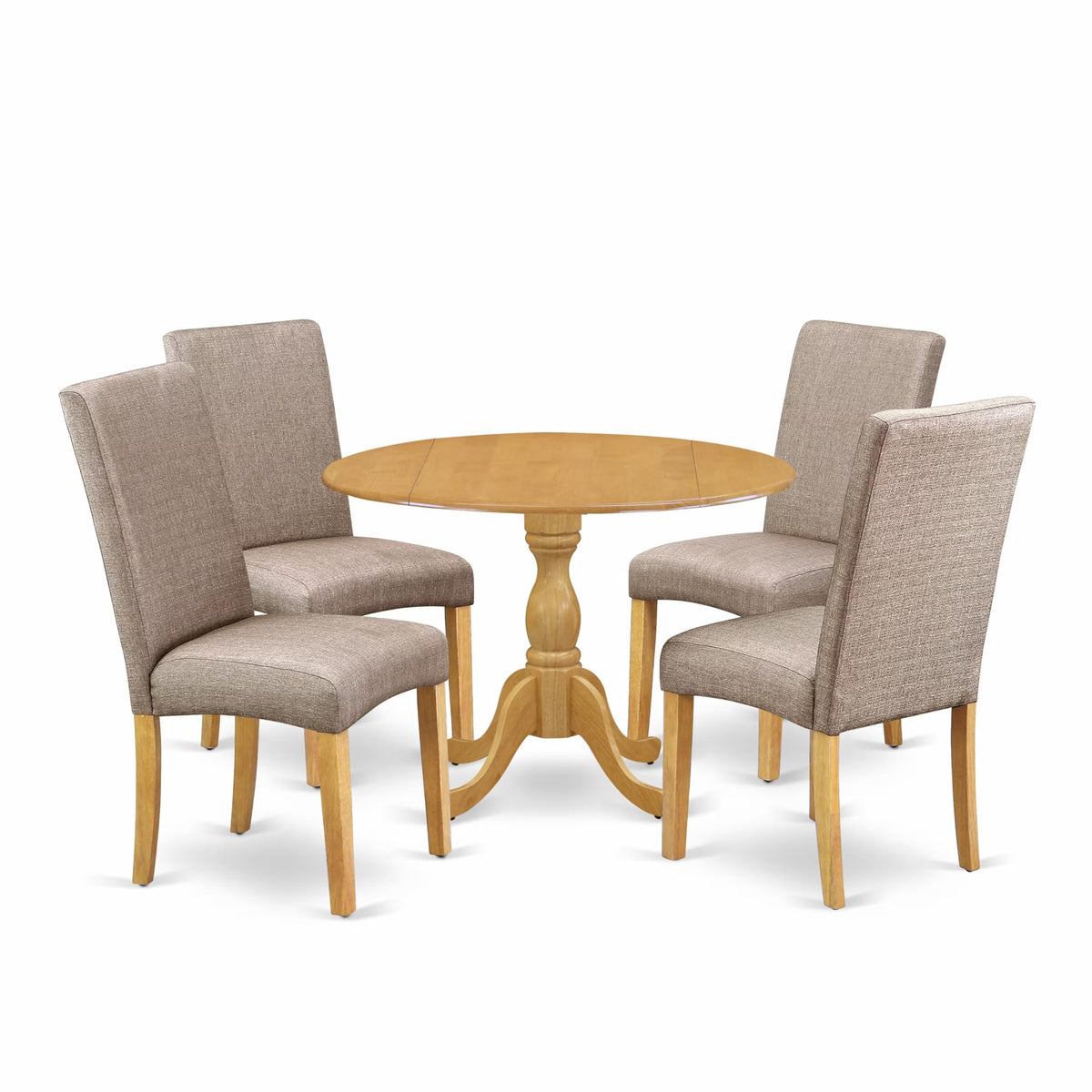 East West Furniture DMDR5-OAK-16 5 Piece Dining Set Includes a Round Dining Room Table with Dropleaf and 4 Dark Khaki Linen Fabric Upholstered Parson Chairs, 42x42 Inch, Oak