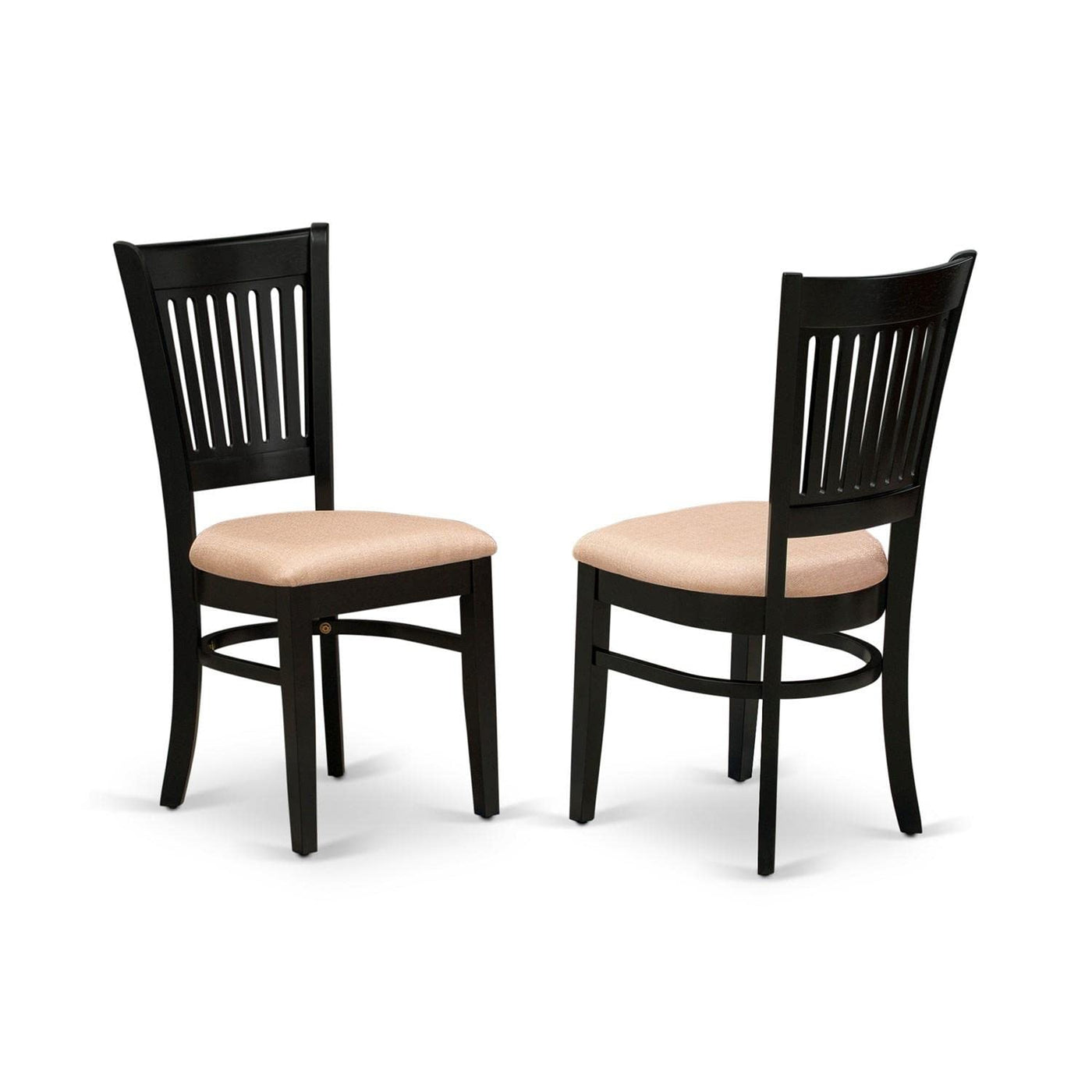 East West Furniture - Dmva3-Blk-C - 3-Pc Modern Dining Table Setour Dining Room Table Set Comes In A Convenient 3-Piece Package, Which Includes 2 Mid-Century Chairs And A Drop-Leaf Breakfast Table. The Chairs Are Designed With A Linen Fabric Seat And Slatted Chair Back, While The Table Boasts A Round Tabletop And Pedestal Legs. This Modern Dining Table Set Is Crafted By Highly Experienced Carpenters Who Take Great Care To Ensure A Smooth And Premium Finish. We Are Committed To Delivering Both Innovation And Ease Of Assembly For Our Customers. Our High-Quality Kitchen Table Set Is A Perfect Fit For Any Dining Area, Be It Casual Home Parties Or Intimate Gatherings.Product Features: Frame Material: Asian Solid Wood Chairs Seating Material: Linen Fabric Color: Black Chairs Dimensions: Length: 20; Width: 17; Height: 37. Table Dimensions: Length: 42; Width: 42; Height: 29.5.Include In Package: 2 Wood Chairs And A Round Dining Table.