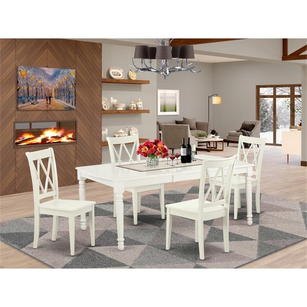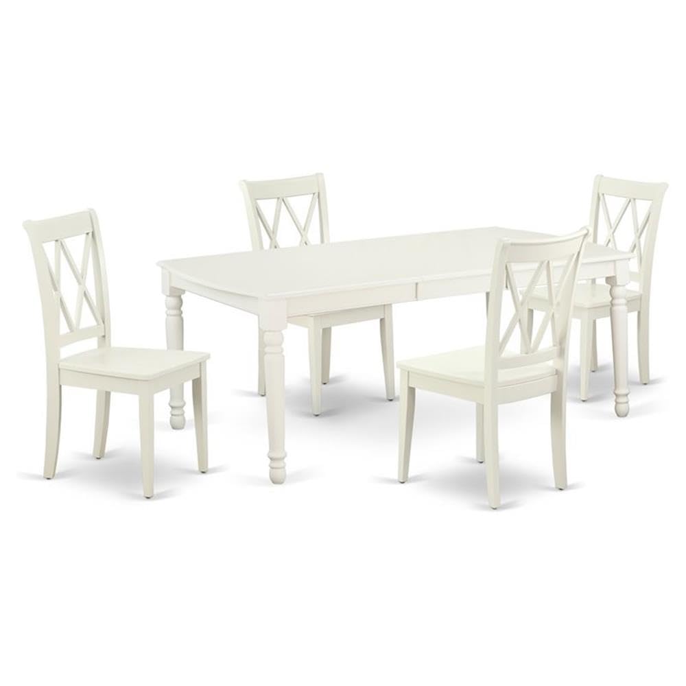 East West Furniture - Docl5-Lwh-W- 5-Piece Dining Table Setthis 5-Piece Dining Set Would Make An Exquisite Addition To Any Dining Room. It Comprises A Small Yet Magnificent Table And 4 Beautiful Wooden Chairs, Designed With A Timeless Aesthetic To Enhance The Overall Elegance Of The Space. The Dining Set Creates A Warm And Inviting Family Atmosphere, Facilitated By Its Comfortable And Luxurious Linen White Color Scheme That Imparts A Relaxed And Friendly Feel To Any Dining Space. The Rectangular Kitchen Table Features A Well-Designed And Comfortable Small Kitchen Table With A Soft, Rounded Bevel At The Edge Of The Tabletop, Allowing For Extended Use. This Sleek Linen White Kitchen Table Is An Excellent Addition To Any Kitchen Space And Complements Various Dining Room Concepts. The Slender Double X Back Kitchen Chairs, Finished In Rich Linen White Color With Wood Seats, Provide Stylish And Comfortable Seating. Crafted From Hardwood, The Chairs Are Sturdy And Have A Durable Finish, Adding Elegance And Sophistication To Any Setting. The Chair'S Frame Is Designed To Provide Optimal Spinal Comfort, Minimizing The Likelihood Of Back Pain. The Matching Color Of The Chair With The Table Creates An Appealing Contrast In The Kitchen Area, While The Standard Shape, Size, And Design Enhance The Dining Area'S Overall Aesthetic. This Contemporary, Cost-Effective, Durable, And Comfortable Dining Set Is An Excellent Choice For Those Seeking An Exceptional Dining Experience With Their Loved Ones.Product Features: Material: Asian Hardwood Color: Linen White Dimensions: Length: 78/60; Width: 42; Height: 30. Dimensions: Length: 22; Width: 18; Height: 37. Weight Capacity: 300 Lbs.Includes: 1 Rectangular Table And 4 Wooden Chairs.