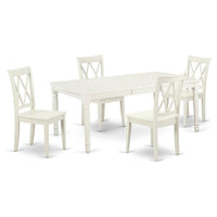 East West Furniture Docl5-Lwh-W 5 Piece Dining Table Set For 4 Includes A Rectangle Kitchen Table With Butterfly Leaf And 4 Dinette Chairs, 42X78 Inch, Linen White