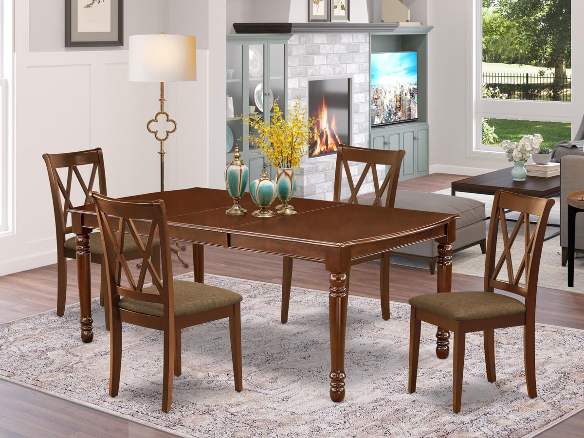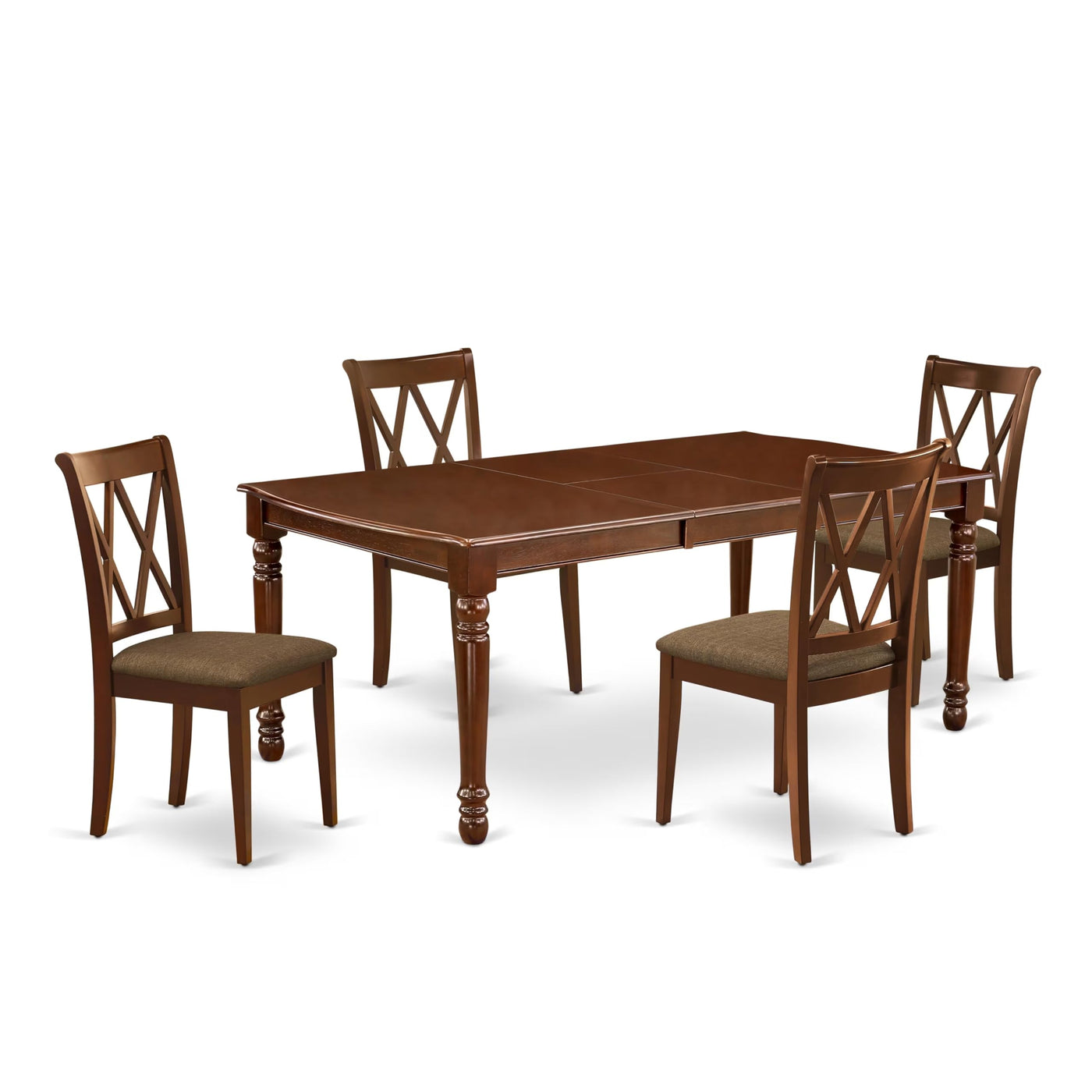East West Furniture Docl5-Mah-C 5 Piece Modern Dining Table Set Includes A Rectangle Wooden Table With Butterfly Leaf And 4 Linen Fabric Dining Room Chairs, 42X78 Inch, Mahogany