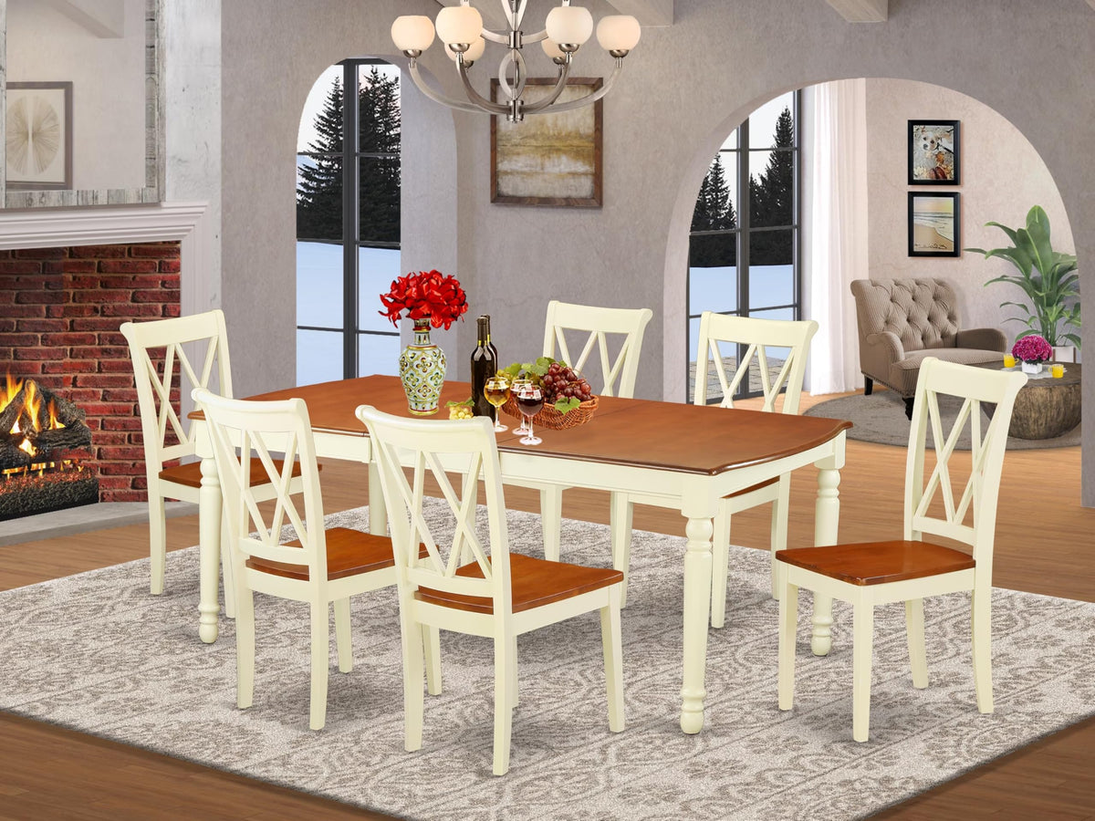 East West Furniture Docl7-Bmk-W 7 Piece Dining Room Furniture Set Consist Of A Rectangle Wooden Table With Butterfly Leaf And 6 Kitchen Dining Chairs, 42X78 Inch, Buttermilk & Cherry