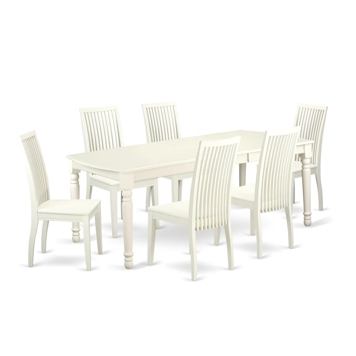 East West Furniture DOIP7-LWH-W 7 Piece Dining Table Set Consist of a Rectangle Dining Room Table with Butterfly Leaf and 6 Wooden Seat Chairs, 42x78 Inch, Linen White