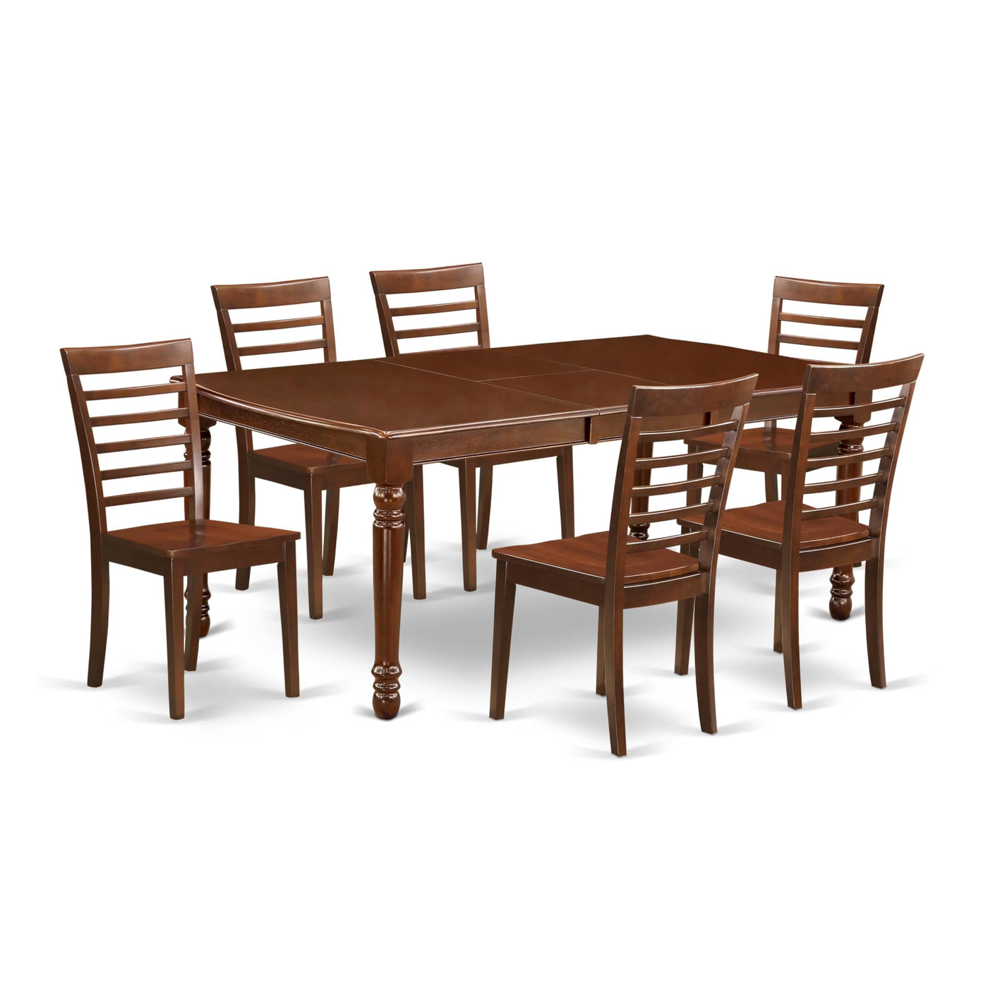 East West Furniture Doml7-Mah-W 7 Piece Dining Set Consist Of A Rectangle Dining Room Table With Butterfly Leaf And 6 Wood Seat Chairs, 42X78 Inch, Mahogany