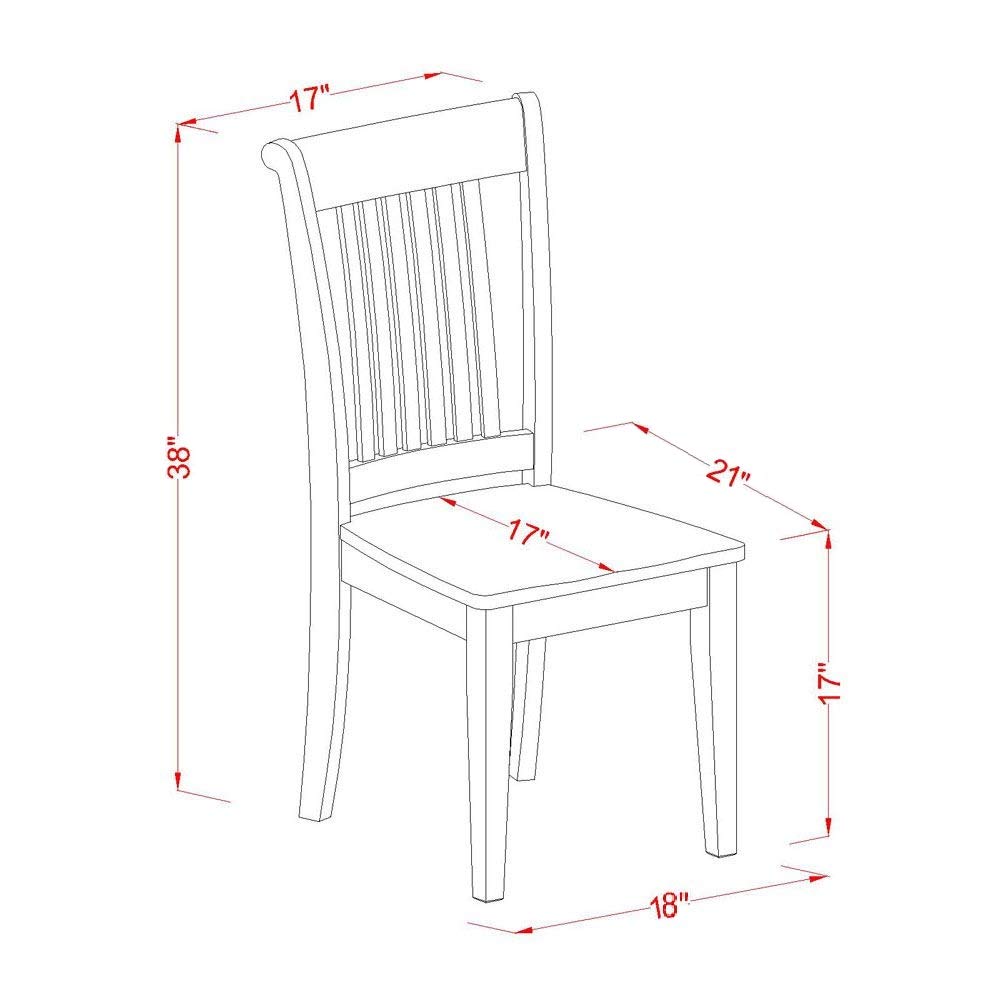 Q: What are the dimensions of the East West Furniture BOEN3-LWH-06 dining table and chairs?A: The dining table measures 42 inches in length, 42 inches in width, and 30 inches in height. The dining chairs have dimensions of 24.5 inches in length, 19 inches in width, and 40.5 inches in height.