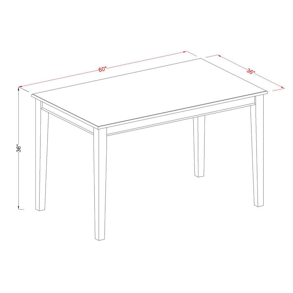 EAST WEST FURNITURE - DUVN5H-MAH-C - DINING ROOM SETThis 5-piece dining room set consists of a dinner table and 4 dining room chairs. The chairs feature a Linen Fabric seat and a Slatted Back, while the table has a rectangular top and four legs. Adding this set to your dining area enhances its elegance. Introducing an exquisite dining table featuring a rectangular top in a luxurious Mahogany color, accompanied by four robust legs meticulously crafted from high-quality Mahogany hardwood. The dining chairs are thoughtfully designed with wooden frames that perfectly complement the Mahogany hue of the table. With a timeless aesthetic, our kitchen chairs and table effortlessly integrate into any room decor, exuding a sense of sophistication and refinement. Our team of highly skilled carpenters meticulously crafted these chairs and table, ensuring a smooth and sophisticated finish. This top-notch modern dining table set is perfect for any dining area and is suitable for both casual home parties and intimate gatherings. We prioritize both innovation and ease of assembly. Following the provided instructions, you can effortlessly put together the modern dining table and chairs.PRODUCT FEATURES: Frame Material: Asian Wood Frame Color: Mahogany Table Top Style: Rectangular Chair Back Style: Slatted Seat Material: Linen Fabric Chair Dimensions: Length: 20; Width: 18; Height: 42. Table Dimensions: Length: 60; Width: 36; Height: 30.Included in the Package: 4 Dinner Chairs and a Modern Table.