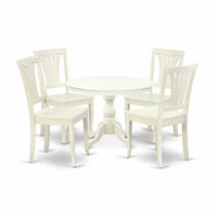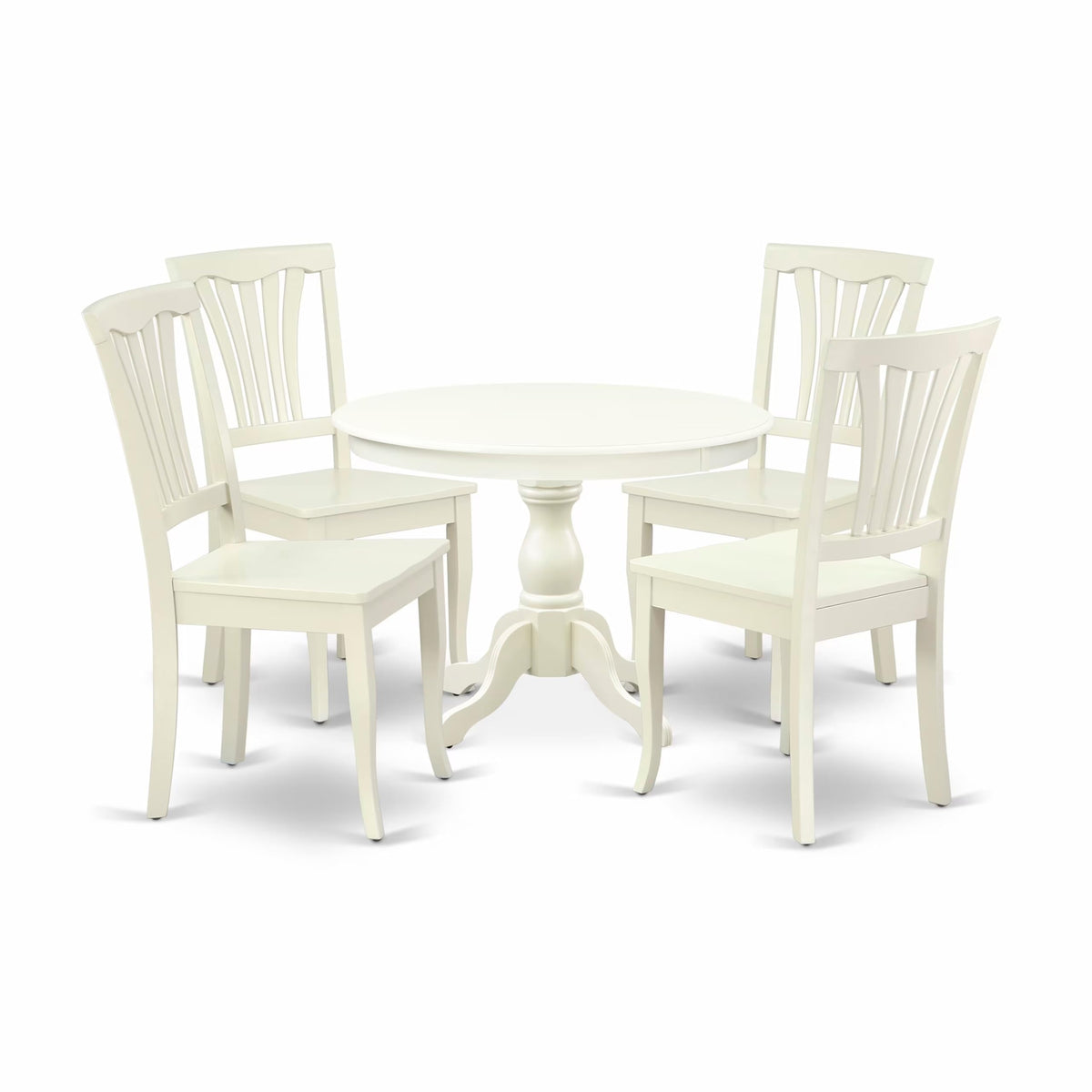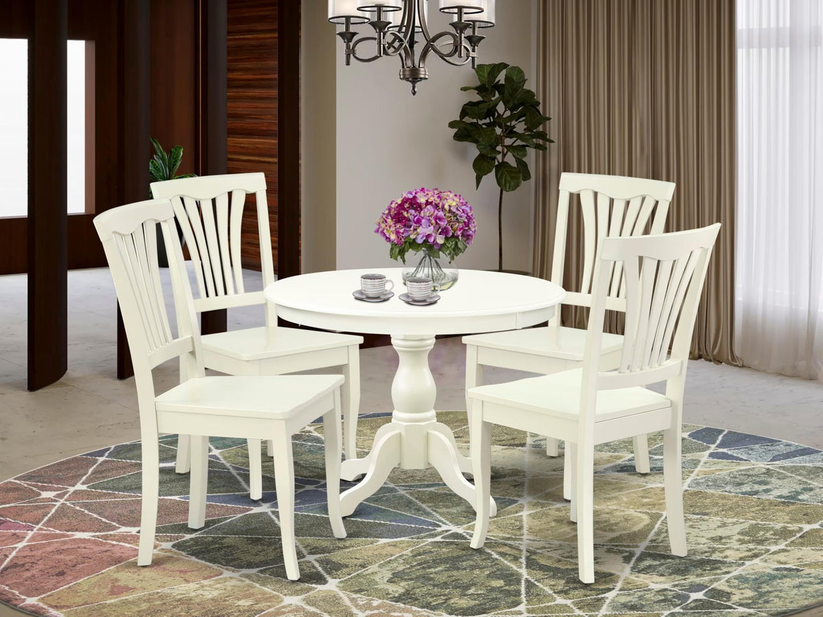 East West Furniture HBAV5-LWH-W 5 Piece Dining Room Table Set Includes a Round Kitchen Table with Pedestal and 4 Dining Chairs, 42x42 Inch, Linen White