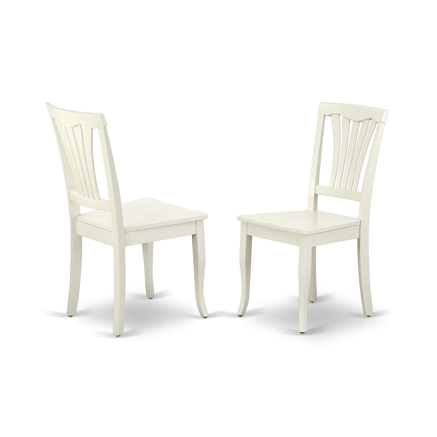 EAST WEST FURNITURE - HBAV5-LWH-W - 5-Pc DINING ROOM TABLE SETIntroducing our 5-Piece dining table set, consisting of a small kitchen table and 4 modern chairs, designed to comfortably accommodate your entire family. This kitchen table set boasts a sophisticated and captivating appearance. The elegant design and rustic linen white wood chairs make it a perfect match for any dining room. Enhance your home decor with our rustic-inspired dining room set, featuring a linen white textured finish that adds a unique charm to any dining area. The sturdy wooden legs of both the dining chairs and the breakfast table contribute to a solid and traditional feel, while the modern style adds an elegant touch to your home that you and your family will truly enjoy. Our dining room chairs provide an incredibly relaxing experience with their slatted back and cone-shaped legs. With a smooth surface, our dining table set for four is easy to clean with a simple wipe-down, ensuring hassle-free maintenance. Assembling our kitchen set is a breeze, requiring only a short amount of time and following the step-by-step instructions will make it even easier.PRODUCT FEATURES: Wood Type: Asian Wood Color: Linen White Chairs Back Style: Slatted Back Chairs Dimension: Length: 22; Width: 18; Height: 36. Dimension of Table: Length: 42; Width: 42; Height: 29.5.Include in this Package: 1 Modern Dining Table and 4 Dining Room Chairs.