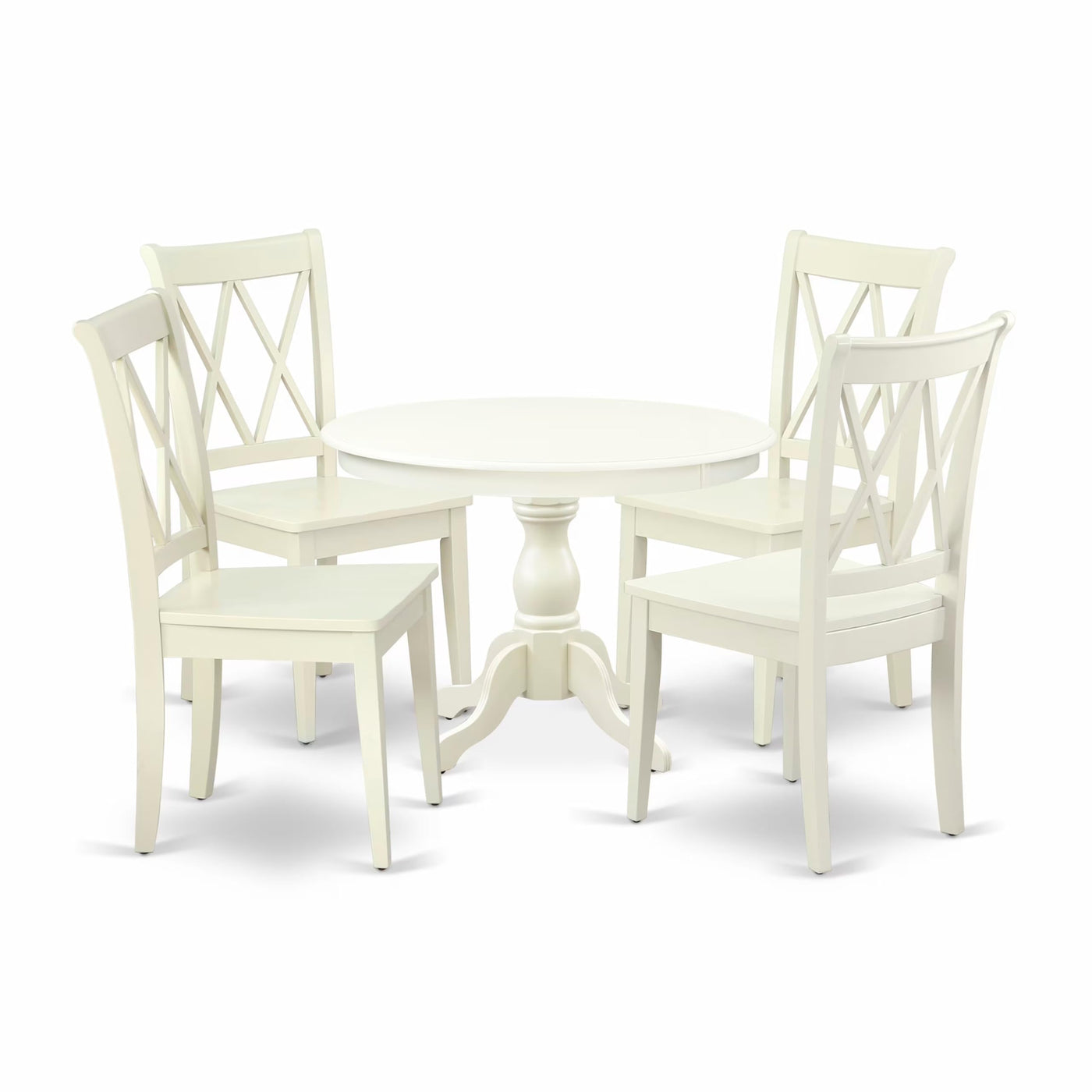 East West Furniture HBCL5-LWH-W 5 Piece Dining Set Includes a Round Dining Room Table with Pedestal and 4 Kitchen Chairs, 42x42 Inch, Linen White