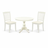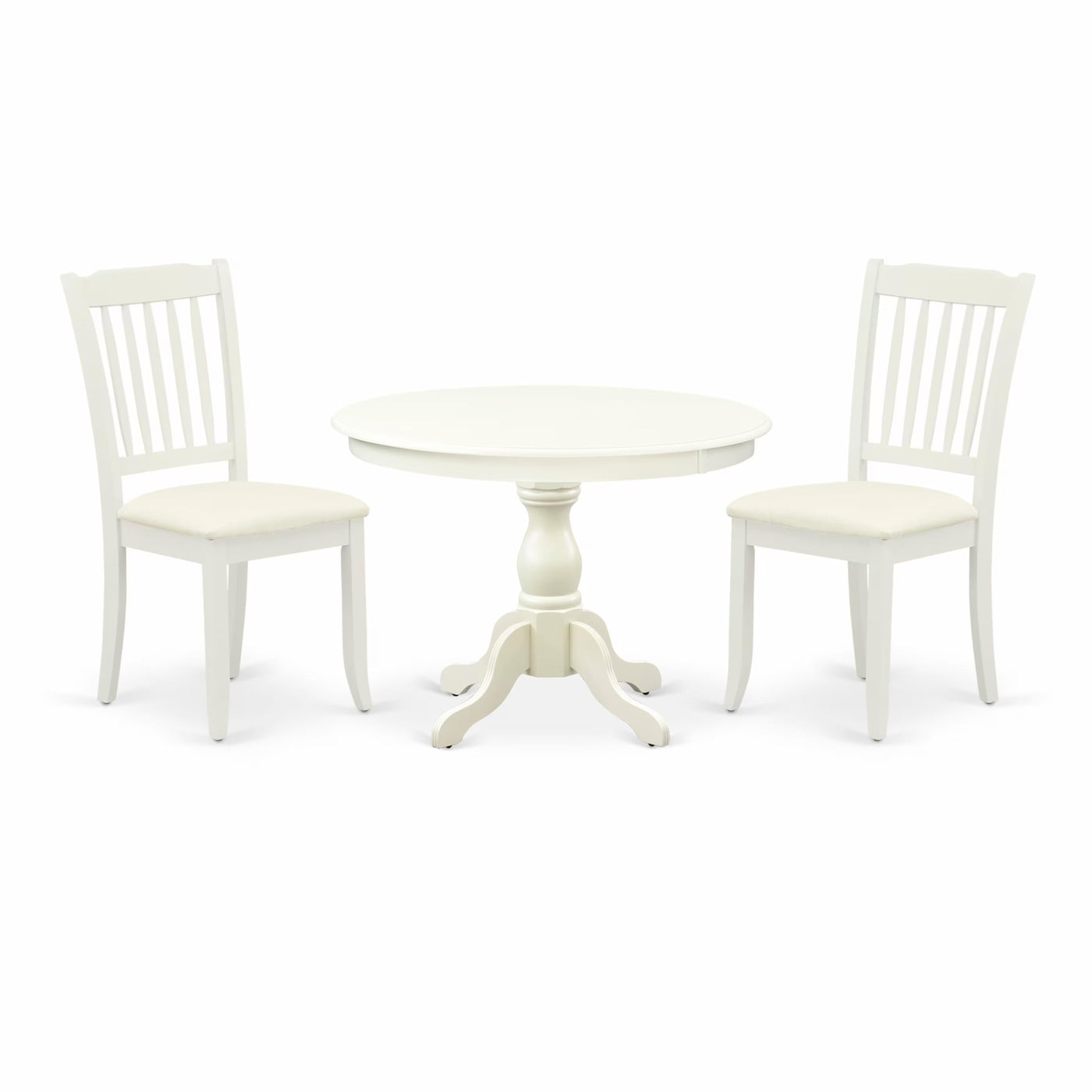 East West Furniture HBDA3-LWH-C 3 Piece Dining Room Table Set Contains a Round Kitchen Table with Pedestal and 2 Linen Fabric Upholstered Dining Chairs, 42x42 Inch, Linen White