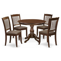 East West Furniture HBDA5-MAH-C Hartland 5 Piece Dinette Set for 4 Includes a Round Room Table with Pedestal and 4 Linen Fabric Kitchen Dining Chairs, 42x42 Inch