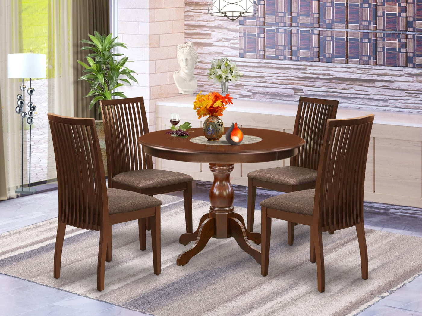 East West Furniture HBIP5-MAH-C 5 Piece Dinette Set for 4 Includes a Round Dining Room Table with Pedestal and 4 Linen Fabric Upholstered Dining Chairs, 42x42 Inch, Mahogany