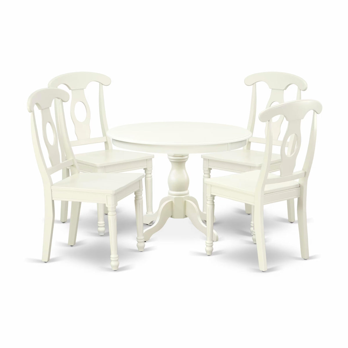 East West Furniture HBKE5-LWH-W 5 Piece Dining Room Table Set Includes a Round Kitchen Table with Pedestal and 4 Dining Chairs, 42x42 Inch, Linen White
