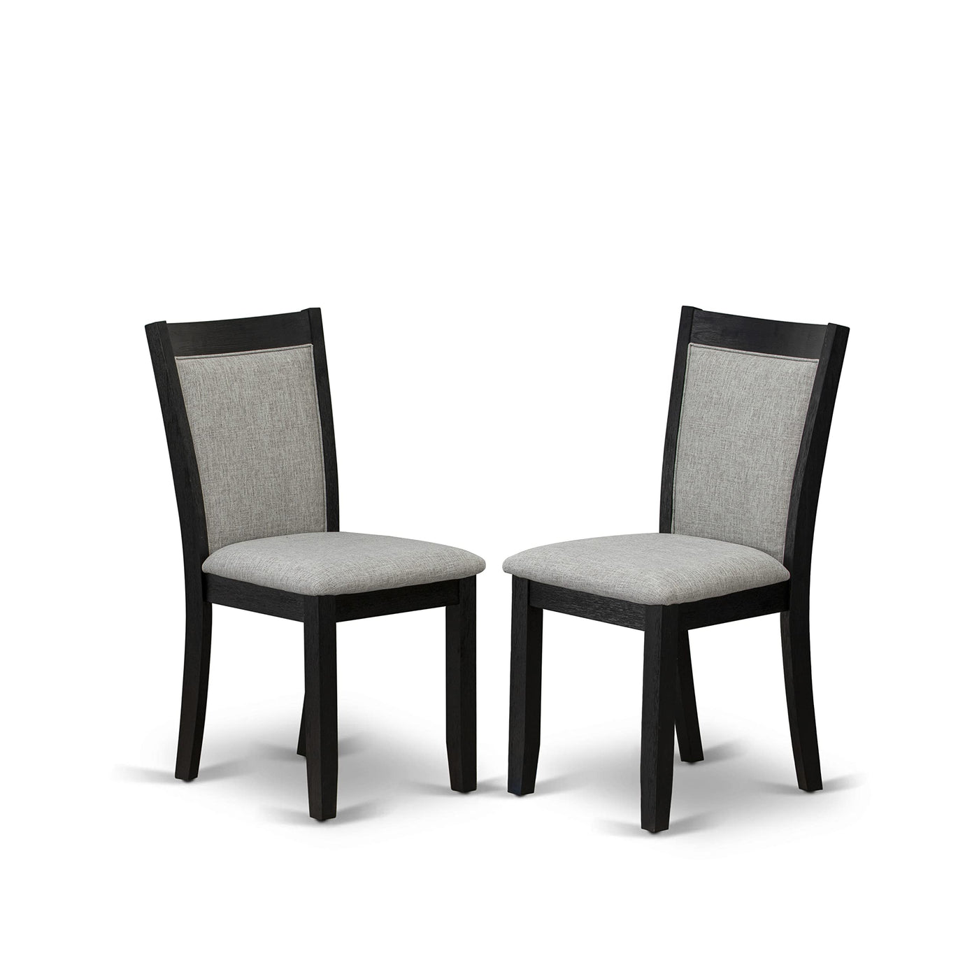 EAST WEST FURNITURE HBMZ5-AB6-06 5-PIECE DINING TABLE SETThe innovative design of this transitional, dining room table set is a wonderful mix of classics that meets contemporary attraction. 5 piece dining room table set included 4 Shitake parsons chairs and a pedestal table that has Wire Brushed Black finish accomplished with any home décor style as the perfect for any dining room and kitchen area. Create an innovative dining space with this mid-century 5 piece dining room table set. The matching wood finishes and beautiful contemporary design add instant style to any kitchen or dining room. Made from solid rubberwood with a Wire Brushed Black finish, the wooden dining table has a gorgeous pedestal. The chair features an upholstered seat and back, while the back of the chair is outlined in a wood frame and the center of the back is upholstered. This kitchen room table set comes with easy parts and instructions that are easy to Assemble for our customers. All tools, hardware and instructions required to put this dining room set together are included in the package. This dinette set features an ultra-modern design that will help blend in with any decor. Keep enjoying East West Furniture!KEY FEATURES:Material: Rubberwood Table Legs Style: Pedestal Legs Fabric Type: Linen Fabric Fabric Finish: Shitake Chair Finish: Wire Brushed Black Table Finish: Wire Brushed Black Finish Table Dimensions: Length: 42; Width: 42; Height: 30. Chair Dimensions: Lenght: 19.5; Width: 17; Height: 37Package included: 5 Piece Kitchen Dining Room Set Contain a Round Pedestal Table and 4 Dining Chair.