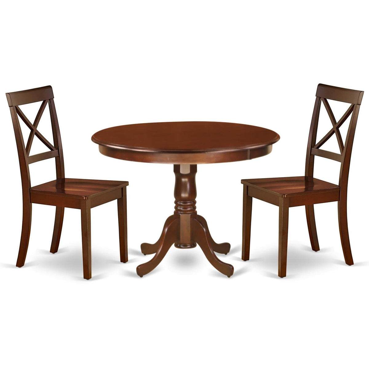 East West Furniture Hlbo3-Mah-W 3 Piece Dining Room Furniture Set Contains A Round Kitchen Table With Pedestal And 2 Dining Chairs, 42X42 Inch, Mahogany