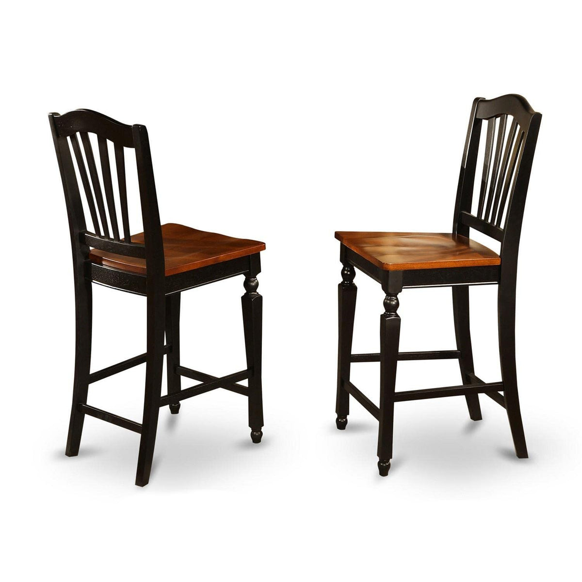 East West Furniture JACH5-BLK-W 5 Piece Counter Height Dining Table Set Includes a Round Kitchen Table with Pedestal and 4 Dining Room Chairs, 36x36 Inch, Black & Cherry