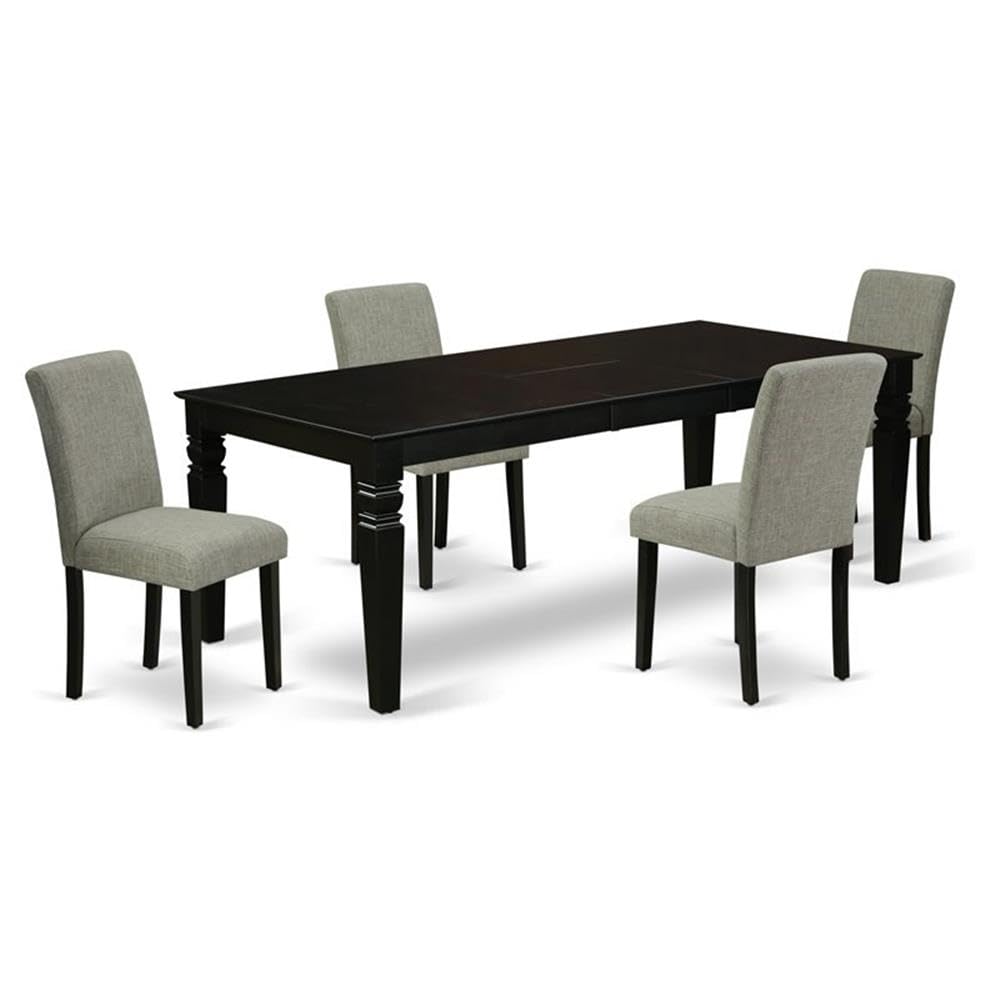 East West Furniture - Lgab5-Blk-06 - Dining Room Setintroducing Our 5-Piece Dining Set, Which Includes 4 Stunning Contemporary Dining Chairs And A Delightful Kitchen Table With Pedestal Legs. This Rectangular Kitchen Table Creates A Warm And Affectionate Atmosphere For Your Family Gatherings. Featuring A Modern Design, This Dining Table Presents A Smooth Black Tabletop Supported By Sleek Black Legs. Our Parson Dining Chairs Complement The Table With Their Seats Upholstered In A Fashionable Dark Shitake Linen Fabric, While Their Black-Finished Wooden Legs Provide Sturdy Support. Crafted From High-Quality Hardwood, The Frame Of The Kitchen Chairs Offers Exceptional Comfort And Helps Reduce The Risk Of Back Pain. The Exquisite Blend Of These High-Quality Hues In Our Dining Set Produces A Refined And Classy Appearance That Enhances The Atmosphere Of Any Residence. Designed For Extended Use, This Well-Crafted Kitchen Table Ensures Hours Of Comfortable Dining. With A Seating Capacity Of 4-8 People, This Rectangular Table Is Perfect For Enjoying Meals Together. Whether Your Dining Room Has A Modern Or Traditional Theme, This Fantastic Kitchen Table Effortlessly Complements Any Style. Enhance The Ambiance And Style Of Your Dining Room With This Simple Yet Charming Parson Chair. Its Contemporary Twist On A Classic Design Adds A Vibrant Touch To Any Space. The Straight Legs Add A Touch Of Rustic Charm, While The Arched Silhouette And Nail Head Trim Provide A Classic Character. By Replacing Your Old Dining Set With This One, You Can Effortlessly Rejuvenate Your Space.Product Features: Material: Asian Hardwood Table Color: Black Fabric: Linen Fabric Cushion Material: Foam Fabric Color: Shitake Chair Leg Color: Black Chair Dimensions: Length: 22; Width: 17.20; Height: 35.20. Table Dimensions: Length: 84/66; Width: 42; Height: 30. Weight Capacity: 300 Lbsincludes: A Rectangular Table And 4 Parson Chairs.Hardware Package And Instruction Manual Are Located In/Under The Seat.