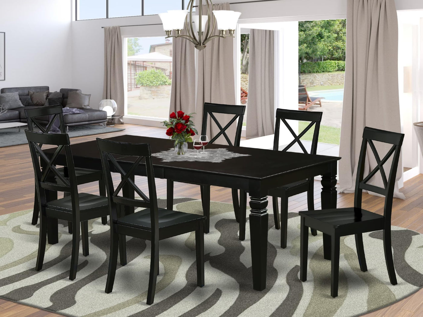 East West Furniture - Lgbo7-Blk-W - Dining Room Setrefresh And Elevate Your Room'S Decor With This Modern Dining Set, Complete With 6 Dining Chairs. The Rectangular Kitchen Table Creates A Warm And Inviting Atmosphere That Fosters A Sense Of Familial Affection. The Comfortable And Elegant Black Color Lends A Relaxing And Friendly Ambiance To Any Dining Area. Designed With Both Style And Comfort In Mind, This Well-Crafted Kitchen Table Is Perfect For Extended Use. Its Spacious Rectangular Shape Can Comfortably Seat 4-8 People, Allowing For Enjoyable Meals And Gatherings. This Wonderful Kitchen Table Is A Versatile Addition To Any Kitchen Space, Seamlessly Fitting Into Various Dining Room Concepts. The Slender X-Back Kitchen Chairs Offer Trendy And Comfortable Seating, Featuring Wooden Seats Finished In An Elegant Black Color That Enhances The Overall Dining Experience. Crafted From Hardwood, These Chairs Provide Stability And A Sturdy Finish. They Effortlessly Add An Element Of Elegance And Class To Any Setting. The Chair Frames Are Thoughtfully Engineered To Provide Excellent Spinal Support, Reducing The Chances Of Back Pain. The Matching Color Of The Chairs With The Table Creates A Pleasing Contrast In The Kitchen Area. The Standard Shape, Size, And Design Of This Dining Set Significantly Enhance The Attractiveness Of The Dining Area. This Contemporary, Budget-Friendly, Durable, And Comfortable Dining Set Is An Excellent Choice For Those Seeking A Remarkable Dining Experience With Family And Friends. It Perfectly Combines Style, Affordability, And Durability To Ensure An Enjoyable Dining Atmosphere.Product Features: Material: Asian Hardwood Color: Black Table Dimensions: Length: 84/66; Width: 42; Height: 30. Chair Dimensions: Length: 21; Width: 18; Height: 38. Weight Capacity: 300 Lbs.Includes: A Rectangular Table And 6 Wooden Chairshardware Package And Instruction Manual Are Located In/Under The Seat.