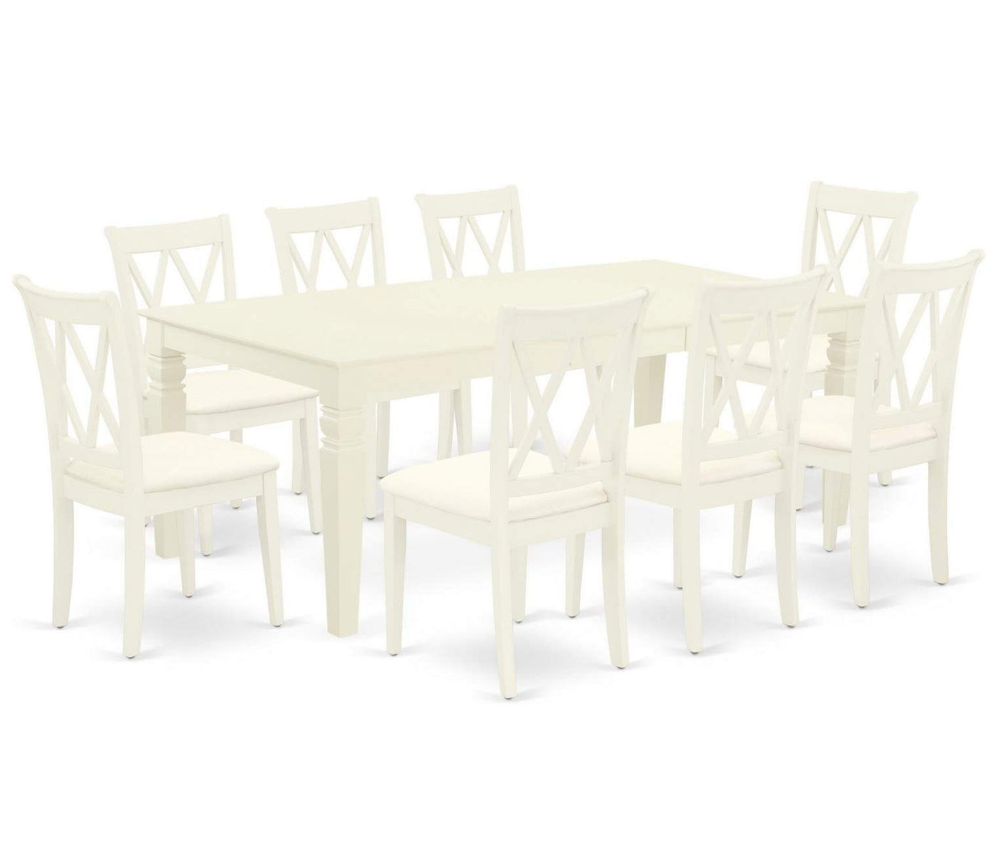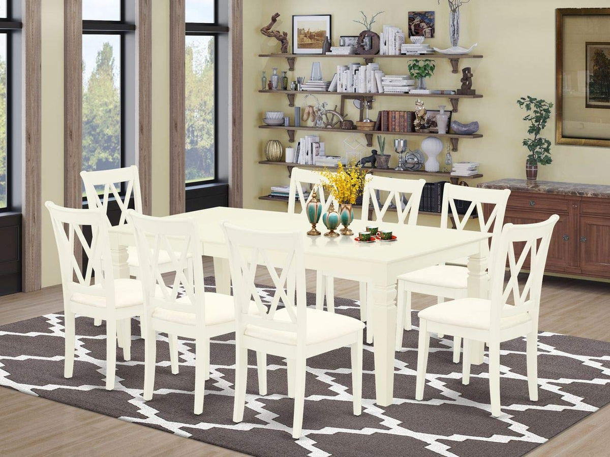 East West Furniture - Lgcl9-Lwh-C - 9-Piece Kitchen Setelevate Your Dining Area With This Exquisite Dining Table Set That Showcases A Timeless Missionary Design. The Set Includes A Generously Sized Kitchen Table And 8 Modern Chairs, Combining A Contemporary Twist With A Classic Style To Bring Charm And Vibrancy To Your Dining Space. The Sleek Double X Back Kitchen Chairs Not Only Offer Fashionable Seating But Also Provide Exceptional Comfort With Their Linen Fabric Seats Finished In A Rich Linen White, Ensuring A Pleasant And Stylish Dining Experience. Meticulously Crafted From High-Quality Rubberwood, An Exceptional Asian Wood Known For Its Superior Quality, Our Dining Room Set Surpasses Expectations In Terms Of Durability, Thanks To The Superb Material Used In Its Manufacturing Process. This Versatile Kitchen Table Is A Fantastic Addition To Any Kitchen Space And Complements Various Dining Room Concepts Flawlessly. The Chair Frames Are Thoughtfully Designed To Offer Excellent Spinal Support, Reducing The Risk Of Back Pain. The Standard Shape, Size, And Design Of This Dining Set Greatly Enhance The Appeal Of Your Dining Area. Furthermore, This Budget-Friendly Set Guarantees Both Durability And Comfort, Making It An Excellent Choice For Creating Memorable Dining Experiences With Your Loved Ones.Product Features: Material: Asian Hardwood Color: Linen White Fabric: Linen Fabric Cushion Material: Foam Fabric Color: White Chair Finish: Linen White Chair Dimensions: Length: 22; Width: 18; Height: 37. Table Dimensions: Length: 84/66; Width: 42; Height: 30. Weight Capacity: 300 Lbs.Includes: 1 Rectangular Table And 8 Dining Chairs