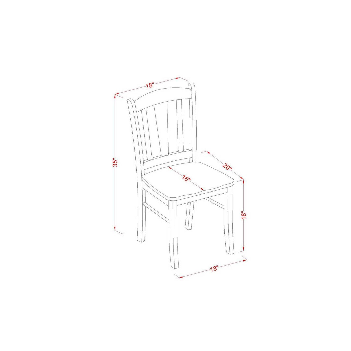 EAST WEST FURNITURE - AMDL3-BCH-W - 3-Pc DINING ROOM SETThis kitchen dining set comes in a sophisticated and clean-silhouette appearance, emphasizing the beauty and luxurious style of the piece, making it the ideal centerpiece that blends into any decor. This 3-Pc modern dining set contains a wood dining table and 2 wooden dining chairs suitable for enjoying in any home. The dining room set is bound to add a certain amount of sophistication to your home that you and your visitors will absolutely love. Suitable for dinette, kitchen, and dining areas, this dinner table set seat up to 2 people, perfect for families to enjoy meal times together. Our dining room table has a Cherry Round Table top and Black Wooden Pedestal Leg, and kitchen chairs have a Black Wooden Seat and Black Solid Wood 4 Legs that allow you to sit cozily every time. This kitchen table set is produced from a top quality hardwood structure, that is tough enough for years of use. This dining table set comes in a modern and beautiful style. Our dining room set is not only sturdier and more steady but also more attractive and inspired in design, giving the beauty of charm to your dining room. Our modern dining set comes in easy parts that are simple to assemble. Easy-to-follow instruction is included in the package, and no additional tools are required for assembly. Keep enjoying East West Furniture!DINING ROOM SET FEATURES:? Material: Asian Hardwood? Seat Material: Wooden? Table Shape: Round Top? Table Top Color: Cherry? Table Legs Color: Black? Chair Legs Color: Black? Chair Back Style: Slatted Back? Chair Weight Capacity: 300 Lbs.? Table Dimensions: Length: 36; Width: 36; Height: 29.5.? Chair Dimensions: Length: 20; Width: 18; Height: 35.Include in this Package: A Mid Century Dining Table and 2 Wood Kitchen Chairs.