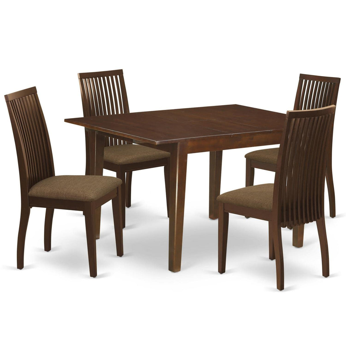 East West Furniture - Mlip5-Mah-C - Dining Room Setintroducing A Luxurious Kitchen Set Perfect For Small Dining Rooms, Consisting Of A Small Rectangular Dining Table And 4 Kitchen Chairs. This Stylish Set Is Specifically Designed With Clean Lines To Enhance And Guide The Room It Occupies. The Dining Table Features An Easily Accessible Extendable Leaf, Allowing You To Expand The Counter Height Surface And Fold It Away To Save Space. Crafted From High-Quality Rubber Wood, The Table Boasts A Sturdy Block Design And A Beautiful Mahogany Finish That Complements Various Home Decoration Styles. The Kitchen Chairs Add Aesthetic Interest With Their Impressive Style On The Back, Seamlessly Blending With Different Decor Trends. They Are Ideal For Private Household Gatherings, Holiday Dinners, Or Even Casual Take-Out Meals. The Chairs Come With Comfortable Linen Fabric Seats. Their Standard Shape, Size, And Design Significantly Enhance The Dining Area. Engineered For Comfort, The Chair Frames Provide Excellent Support For Your Spine, Reducing The Chances Of Back Pain. This Budget-Friendly, Durable, And Comfortable Kitchen Set Is An Excellent Choice For Creating A Memorable Dining Experience With Your Family Or Friends.Product Features: Material: Asian Hardwood Table Color: Mahogany Fabric: Linen Fabric Fabric Cushion Material: Foam Fabric Color: Brown Chair Finish: Mahogany Chair Dimensions: Length: 21; Width: 18; Height: 39. Table Dimensions: Length: 54/42; Width: 36; Height: 30. Weight Capacity: 300 Lbsincludes: A Rectangular Table And 4 Kitchen Chairshardware Package And Instruction Manual Are Located In/Under The Seat.