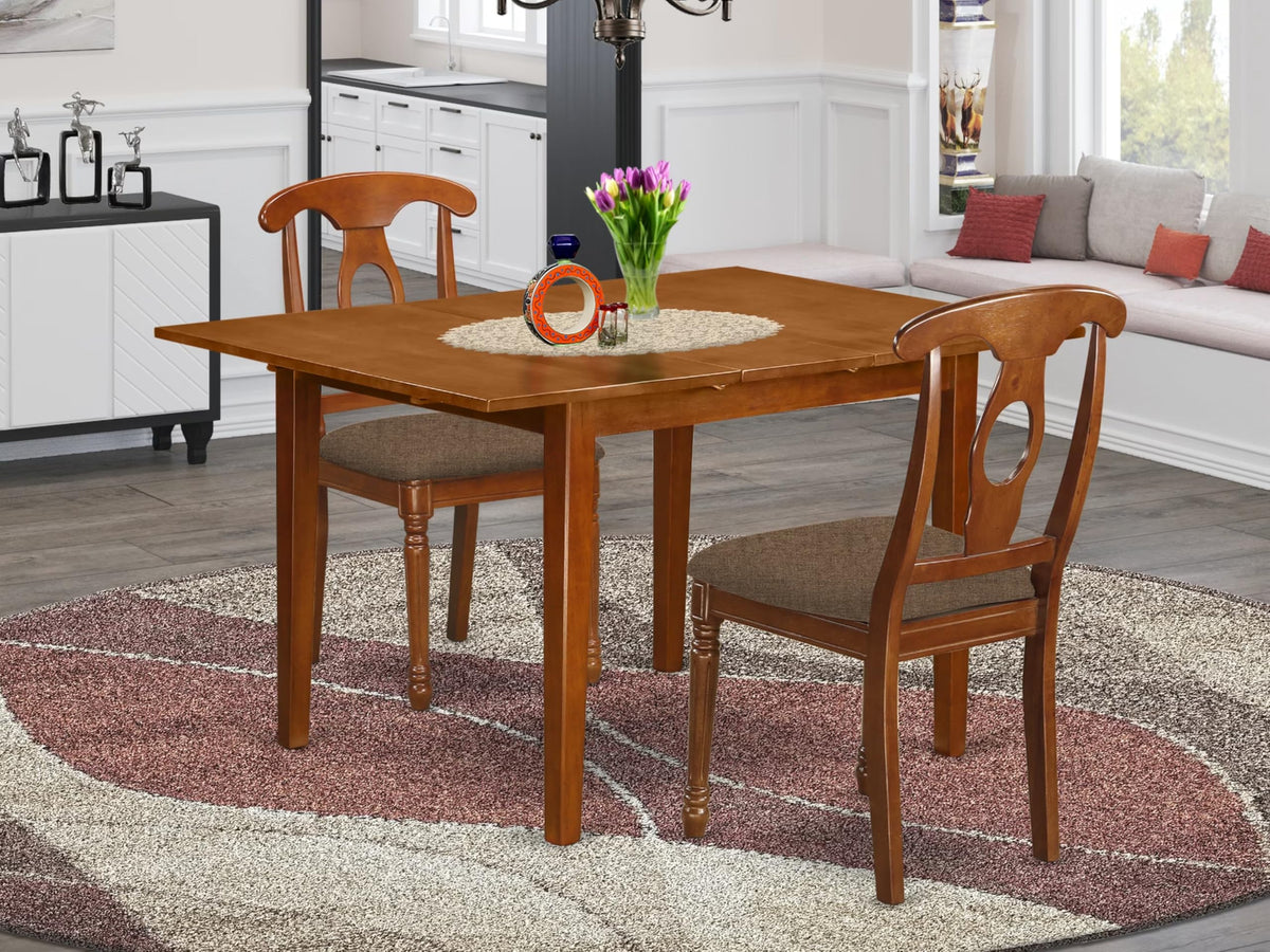 East West Furniture MLNA3-SBR-C 3 Piece Kitchen Table Set Contains a Rectangle Dining Room Table with Butterfly Leaf and 2 Linen Fabric Upholstered Dining Chairs, 36x54 Inch, Saddle Brown
