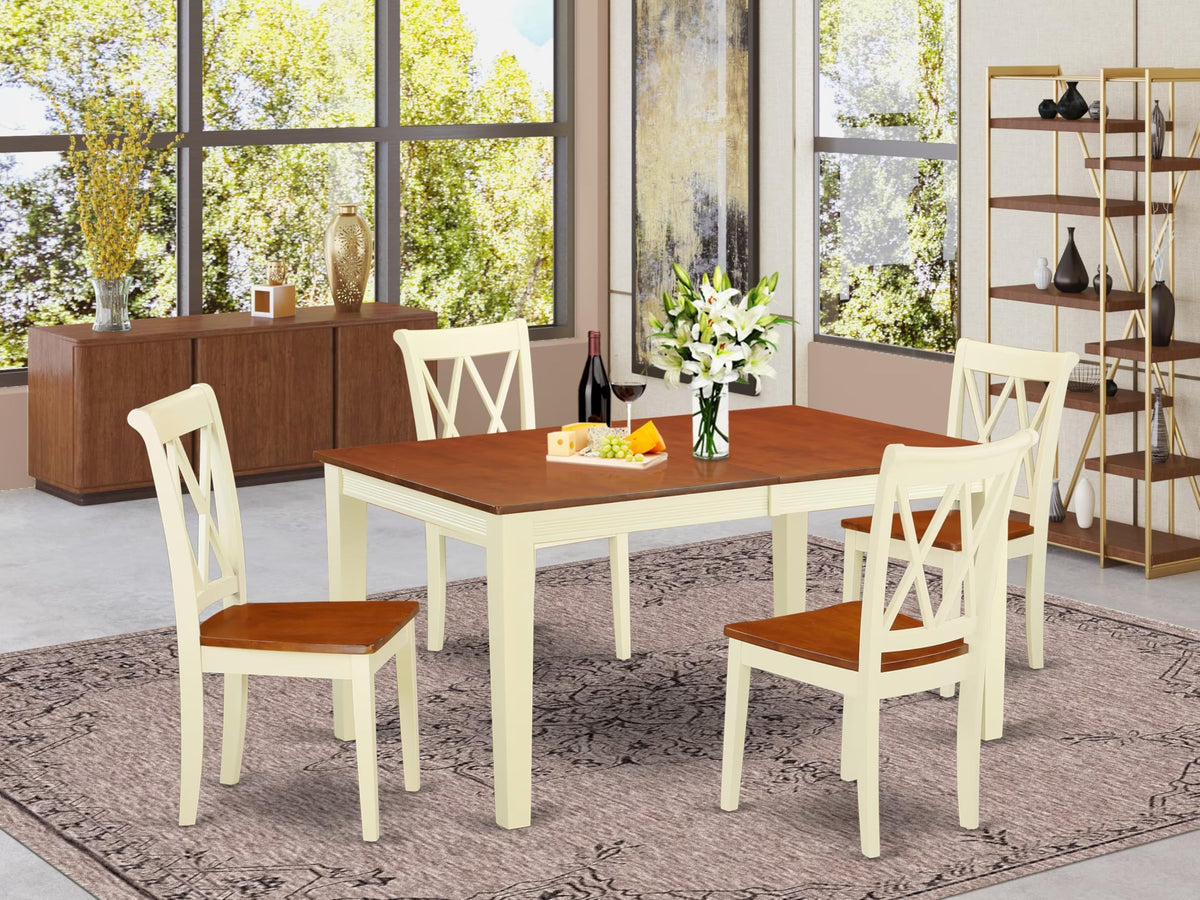 East West Furniture Nicl5-Bmk-W 5 Piece Kitchen Table & Chairs Set Includes A Rectangle Dining Room Table With Butterfly Leaf And 4 Solid Wood Seat Chairs, 36X66 Inch, Buttermilk & Cherry