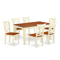 East West Furniture Nicl7-Bmk-W 7 Piece Dining Table Set Consist Of A Rectangle Dinner Table With Butterfly Leaf And 6 Dining Room Chairs, 36X66 Inch, Buttermilk & Cherry