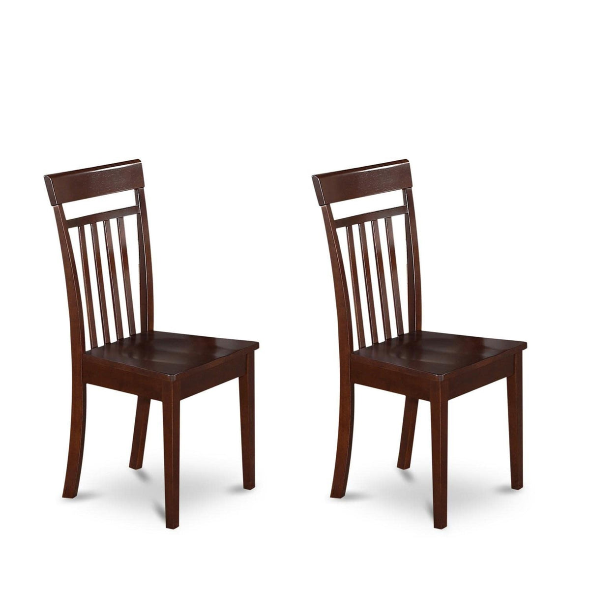 EAST WEST FURNITURE - NOCA3-MAH-W - DINING ROOM SETIntroducing our exquisite 3-piece dining room set, featuring 2 modern dining chairs and a butterfly leaf wood table. The immaculate tabletop boasts an irremovable Mahogany finish, complemented by the mid-century chairs with Mahogany finished wooden legs and comfortable seats. With a Wooden Seat, Slatted Back, and butterfly leaf top, this set adds grace to any dining room. Crafted by highly experienced carpenters, the kitchen set has a smooth and high-end finish. Made from premium Asian rubberwood, known for durability and eco-friendliness, this dining set will be a cherished fixture for years to come. Easy to assemble, it's perfect for casual home parties or intimate gatherings. Customer happiness is our top priority!PRODUCT FEATURES: Frame Material: Asian Wood Frame Color: Mahogany Table Top Style: Rectangular Chair Back Style: Slatted Chair Seat Material: Wood Chair Dimensions: Length: 20; Width: 17; Height: 38. Table Dimensions: Length: 53.5/42; Width: 31.5; Height: 29.Included in the Package: 2 Dinning Room Chairs and a Dining Table.