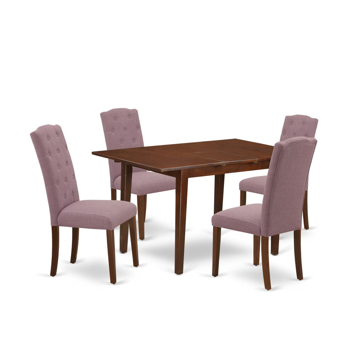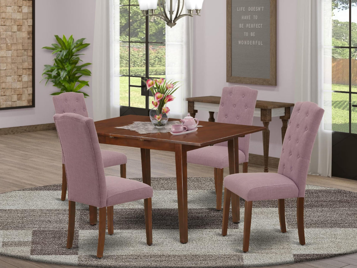 East West Furniture Noce5-Mah-10 5 Piece Kitchen Table Set Includes A Rectangle Dining Room Table With Butterfly Leaf And 4 Dahlia Linen Fabric Upholstered Chairs, 32X54 Inch, Mahogany