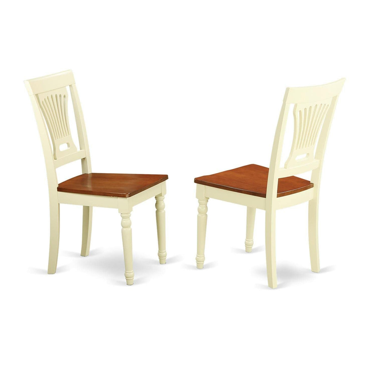 EAST WEST FURNITURE - NOPL5-WHI-W - DINNER TABLE SETPresenting our sophisticated 5-piece kitchen table set, complete with a chic butterfly leaf breakfast table and 4 dining chairs. The chairs feature a comfortable Wooden Seat and Slatted Back design, while the modern table showcases a convenient butterfly leaf top and sturdy 4 legs, adding a touch of elegance to your dining space. Our dining table boasts a durable Cherry table top with a lasting finish, beautifully complemented by Buttermilk finished wooden legs. The modern chairs, also with Buttermilk finished legs, infuse a hint of contemporary style into any dining area while ensuring utmost comfort. Meticulously crafted from premium Asian Wood, specifically rubberwood, our kitchen table set is renowned for its exceptional durability, strength, stability, and timeless allure. The collaboration with a skilled carpenter ensures flawless craftsmanship, resulting in an exquisite and professionally finished kitchen table set. Versatility is a defining characteristic of this dining table set, making it perfect for both casual home gatherings and intimate get-togethers. We prioritize innovation and ease of assembly, ensuring you can effortlessly put together the self-storing butterfly leaf dinner table and dining room chairs with the provided instructions.PRODUCT FEATURES: Frame Material: Asian Wood Frame Color: Buttermilk and Cherry Table Top Style: Rectangular Chair Back Style: Slatted Chair Seat Material: Wood Chair Dimensions: Length: 22; Width: 18; Height: 37. Table Dimensions: Length: 53.5/42; Width: 31.5; Height: 29.Included in the Package: 4 Modern Dining Chairs and a Dinner Table.