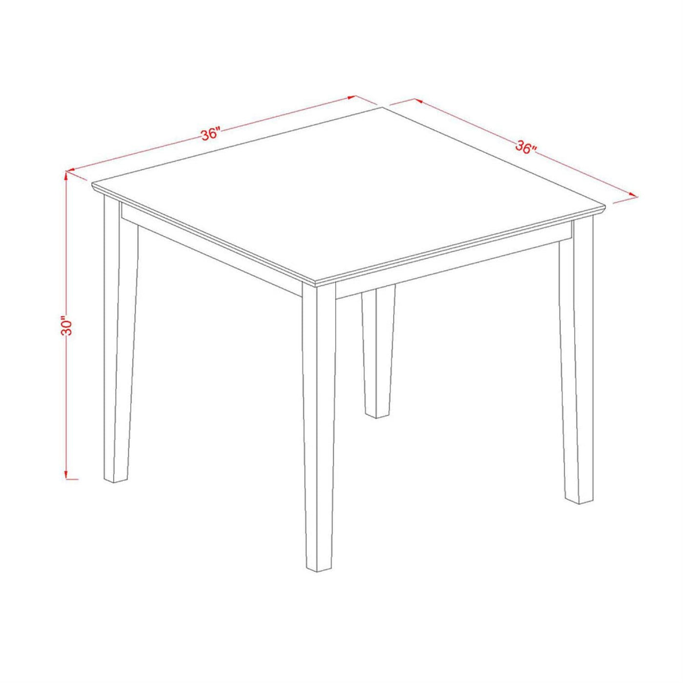 EAST WEST FURNITURE - OXIP3-MAH-W - DINING TABLE SETWe are delighted to showcase our exquisite 3-Piece Kitchen Room Set, comprising a tastefully designed wooden dining table and two impeccably crafted dining chairs. The dining set presents a meticulously designed kitchen table highlighted by a resplendent Mahogany Color Table Top, expertly upheld by four robust Hardwood Legs. Our dining room chairs showcase a symphony of elegance with their four Mahogany Legs and a luxuriously comfortable Wooden Seat. This intricately fashioned dining table set exemplifies outstanding durability, meticulously crafted from the finest Asian timber - renowned as Rubberwood. Our impeccably crafted kitchen chairs offer wooden seats, providing a consistently innovative and refined seating experience. The inclusion of slatted backs ensures impeccable lumbar support, enhancing the overall comfort and elegance of the set. We strive to provide both innovation and simplicity in our offerings. Our modern dining table and wooden dining chairs can be effortlessly assembled using the provided instructions. Should you encounter any difficulties, please don't hesitate to reach out to us for assistance. Make your purchase with confidence, as ensuring customer satisfaction is our utmost priority.PRODUCT FEATURES: Frame Material: Asian Wood Frame Color: Mahogany Seat Material: Wood Chair Back Style: Slatted Back Chair Dimensions: Length: 21; Width: 18; Height: 39. Table Dimensions: Length: 36; Width: 36; Height: 30.Included in the Package: 2 Dinning Chairs and a Dining Table.