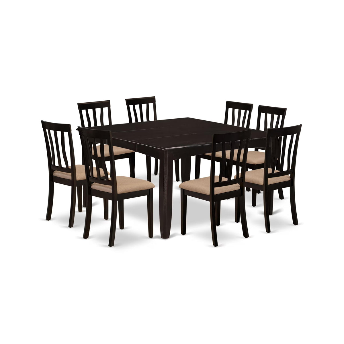 East West Furniture PFAN9-CAP-C 9 Piece Modern Dining Table Set Includes a Square Wooden Table with Butterfly Leaf and 8 Linen Fabric Dining Room Chairs, 54x54 Inch, Cappuccino